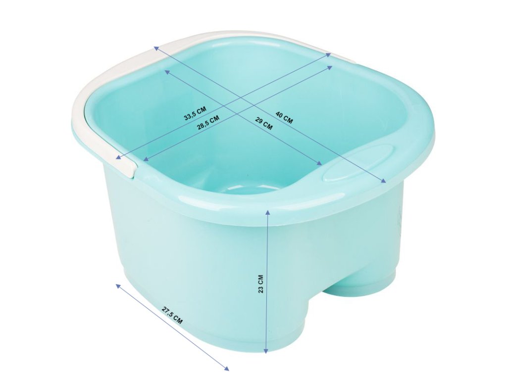 Eine Schüssel ist zum Einweichen der Füße vor der Pediküre geeignet. Sie wird aus Kunststoff hergestellt, verfügt über einen profilierten Boden und Massagerollen. Ausgestattet mit einem Griff zum Tragen und einfachen Ausgießen des Wassers.Zusätzliche Parameter