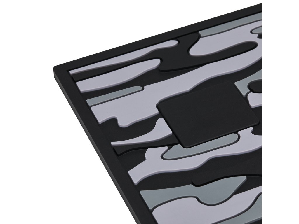 Der größte Vorteil dieser Matte sind die 4 eingebauten Magnete, mit denen Sie Metallwerkzeuge, wie z.B. Scheren oder Scheren, während der Arbeit sicher verstauen können. Sie bewahren Werkzeuge an einem Ort auf, bieten einen einfachen Zugriff und verhindern, dass sie versehentlich verschoben oder heruntergefallen sind. Die Matte ist flexibel, weich und kehrt leicht in ihre ursprüngliche Form zurück. Mit starkem Griff und rutschfester Textur garantiert die Matte Sicherheit und Komfort bei der Arbeit und schützt die Werkzeuge vor Stürzen. Das attraktive Camo-Muster verleiht dem Arbeitsplatz einen ästhetischen Ausdruck.
