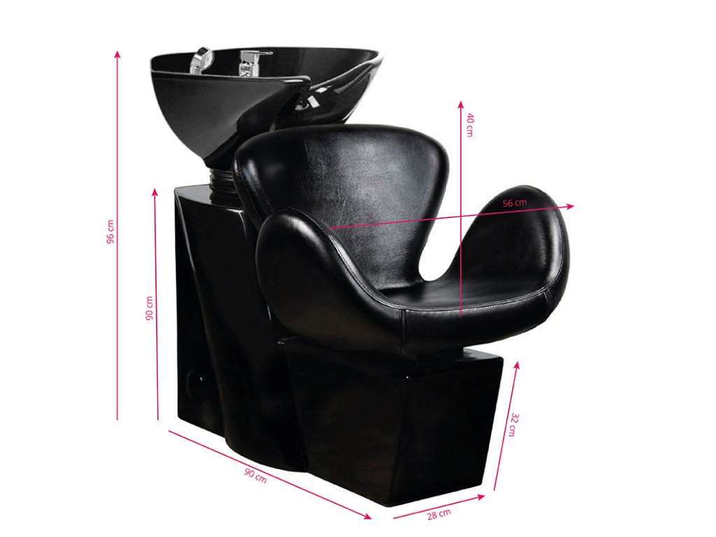 Eine professionelle Friseur-Waschanlage - stabil, extrem komfortabel, solide gefertigt. Ein modernes Design macht dieses Möbelstück zu einer schönen Ergänzung der Ausstattung eines modernen Friseursalons. Ein stromlinienförmiger Sitz wurde aus hochwertigem, pflegeleichtem Öko-Leder hergestellt. Die Silikon-Kopfstütze stabilisiert den Kopf des Kunden und ermöglicht ein bequemes Legen des Kopfes auf das Waschbecken. Weiße Schale mit einstellbarer Neigung. Die Waschanlage ist in Schwarz erhältlich.Zusätzliche Parameter