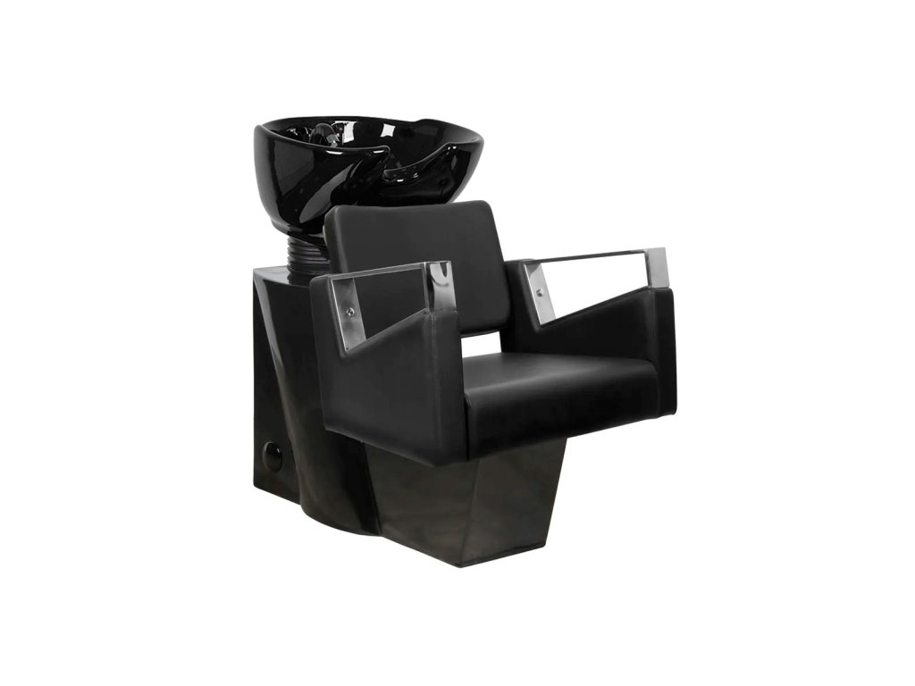 Eine professionelle Friseur-Waschanlage - stabil, extrem komfortabel, solide gefertigt. Ein modernes Design macht dieses Möbelstück zu einer schönen Ergänzung der Ausstattung eines modernen Friseursalons. Ein stromlinienförmiger Sitz wurde aus hochwertigem, pflegeleichtem Öko-Leder hergestellt. Die Silikon-Kopfstütze stabilisiert den Kopf des Kunden und ermöglicht ein bequemes Legen des Kopfes auf das Waschbecken. Weiße Schale mit einstellbarer Neigung. Die Waschanlage ist in Schwarz erhältlich.Zusätzliche Parameter