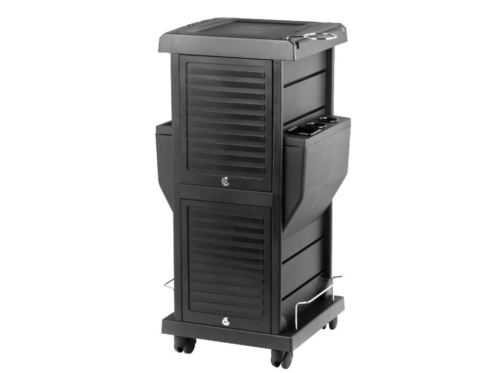 Der Friseurwagen ist in Schwarz erhältlich. Er verfügt über 2 abschließbare Rollläden, 4 Aufbewahrungsladen und 15 Fächer für das Friseursortiment. Die stabile Konstruktion sorgt für eine lange Verwendung. Tisch auf Rädern, dank dem Ihre Werkzeuge immer griffbereit sind.Friseurwagen in Selbstmontageteilen.