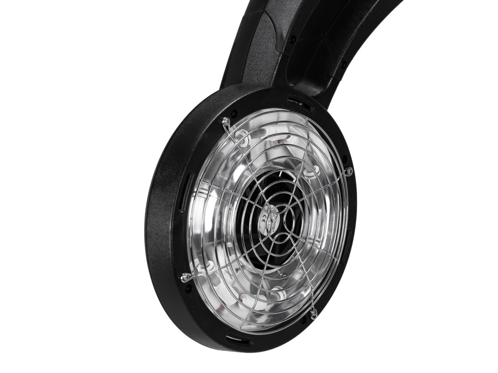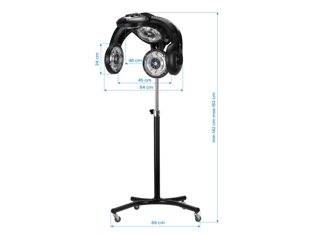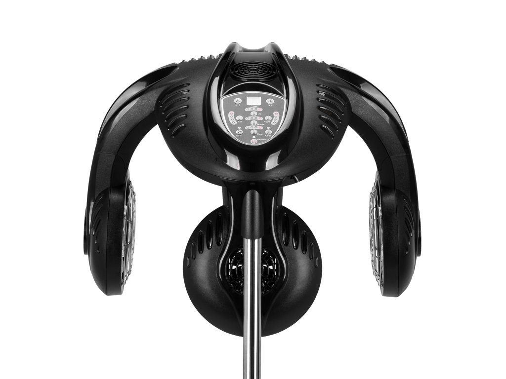 Das futuristische Gehäuse aus strapazierfähigem Kunststoff in Schwarztönen verleiht dem Gerät ein modernes und einzigartiges Aussehen, so dass es in die meisten Innenräume passt. Außerdem ist es langlebig und leicht zu reinigen. Für Stabilität sorgt ein Vier-Stern-Fußkreuz, das mit Rädern ausgestattet ist, um die Mobilität zu gewährleisten. Verstellbar im Bereich von 142-162 cm garantiert das Stativ ein komfortables Arbeiten und die Anpassung des Gerätes an die individuellen Bedürfnisse.