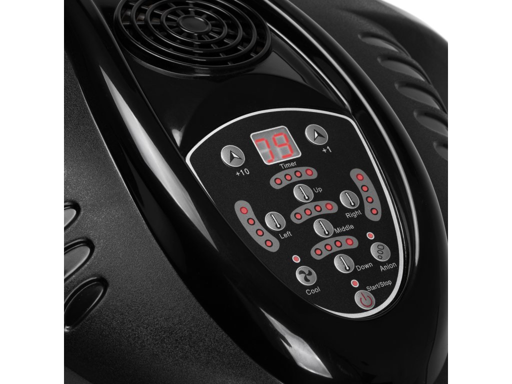 Die elektronische Parametereinstellung erleichtert die Arbeit des Friseurs erheblich. Das Gerät ist mit einem Bedienfeld mit Digitalanzeige ausgestattet. Mit seiner Verwendung können Sie die Leistung jedes der fünf Lüftungsschlitze in vier Stufen effizient einstellen und damit die Temperatur (im Bereich von 70-90 °C) oder die Dauer der Behandlung (zwischen 1 und 59 Minuten). Darüber hinaus verfügt das Gerät über eine Ozonfunktion. Das Gerät verbessert spürbar die Leistung verschiedener Behandlungen.