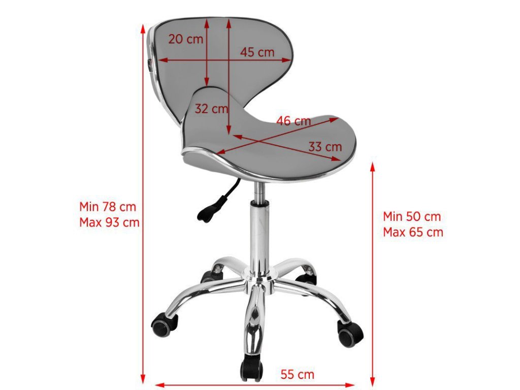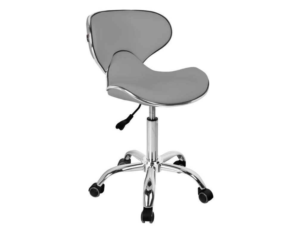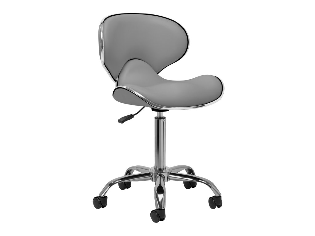 Dieser Kosmetikhocker wurde mit einem bequemen, runden Sitz ausgestattet, der mit hochwertigem grauem Kunstleder (Öko-Leder) bezogen ist – pflegeleicht, langlebig und angenehm in der Haptik. Das moderne, schlichte Design unterstreicht den professionellen Charakter jedes Arbeitsbereichs und fügt sich mühelos in verschiedene Raumkonzepte ein.