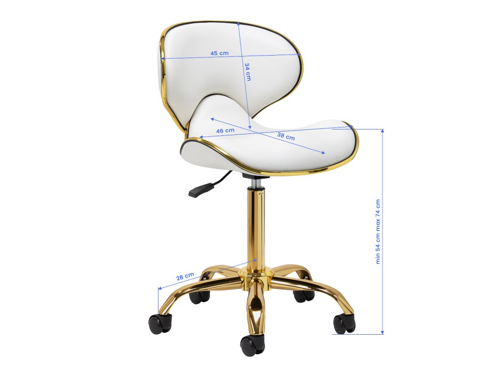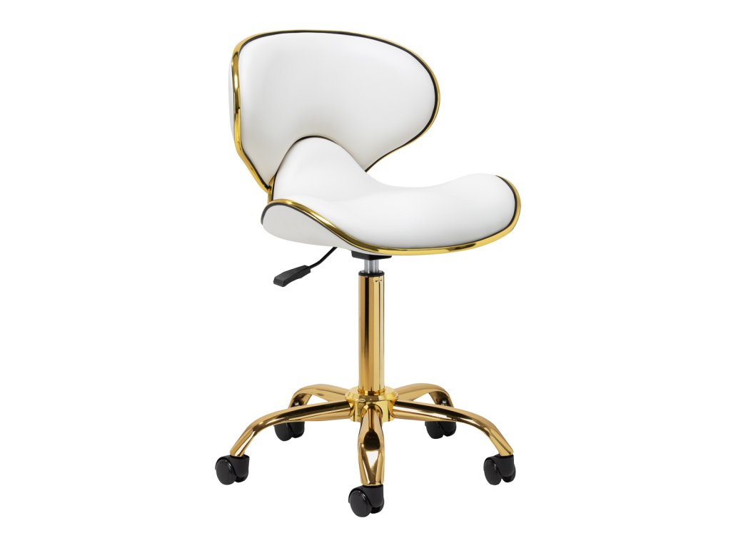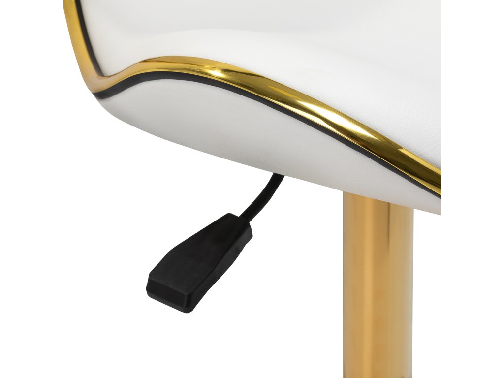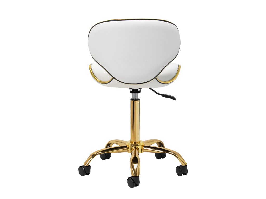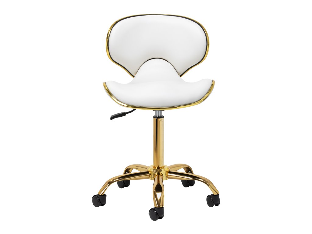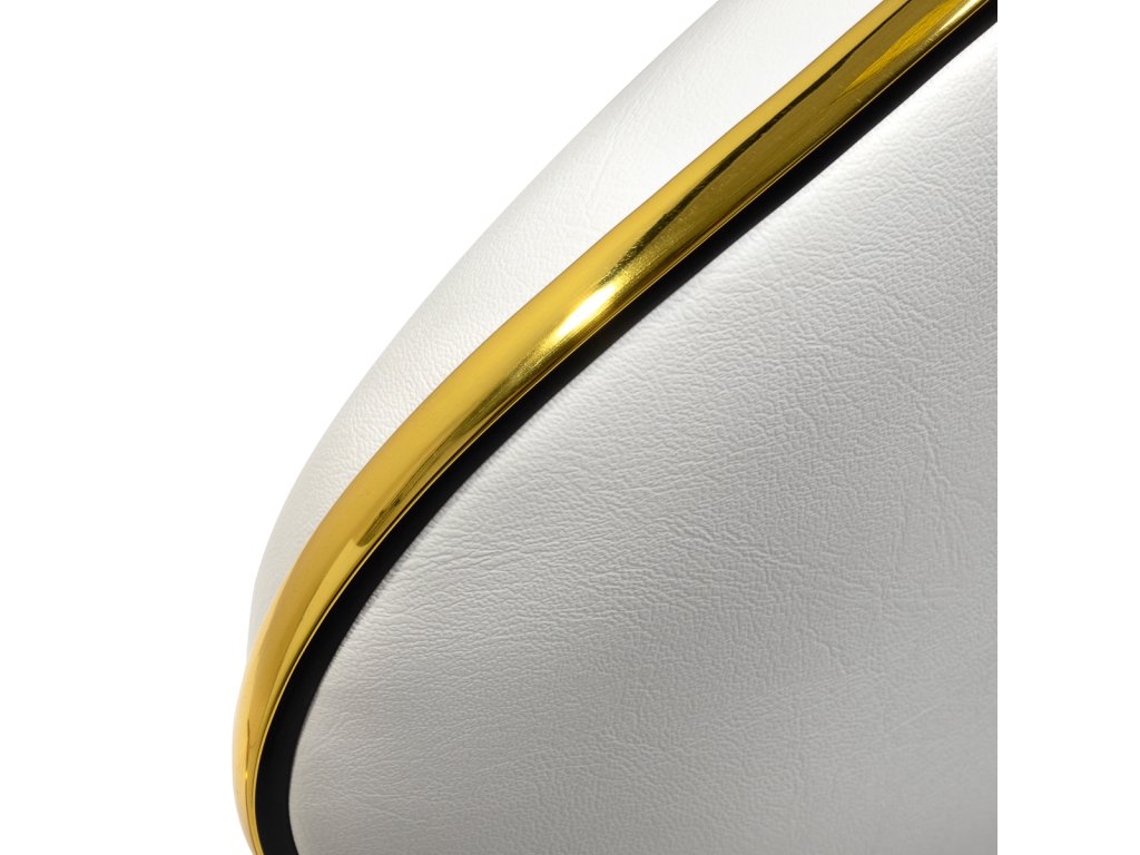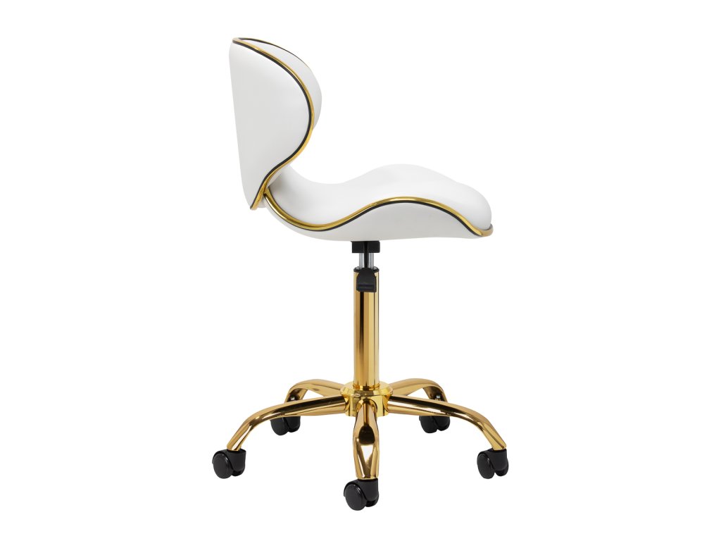 Das Fünf-Sterne-Basiskreuz sorgt für Stabilität, auch bei dynamischen Bewegungen oder häufigen Positionswechseln. Mit langlebigen Rädern ausgestattet, bietet es hohe Mobilität, sodass Sie sich frei im Salon oder Büro bewegen können. Der Bezug aus Kunstleder in Weißtönen ist nicht nur langlebig, sondern auch leicht zu reinigen. Ästhetische Goldelemente verleihen einen luxuriösen Touch und ziehen die Blicke auf sich. Die einzigartige Kombination aus Eleganz und Komfort macht diesen Hocker zu einem unverzichtbaren Werkzeug für jeden Profi.