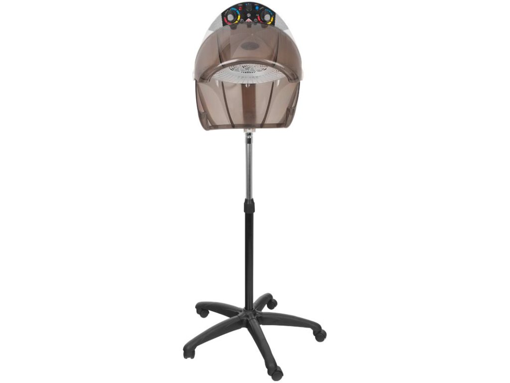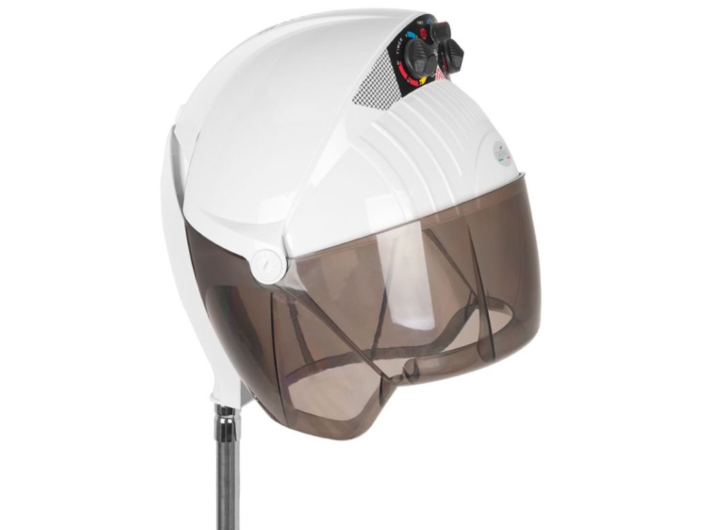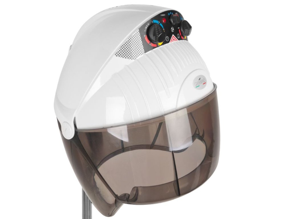 Die Trockenhaube Gabbiano befindet sich auf einem höhenverstellbaren Stativ. Das Gebläse besitzt drei Geschwindigkeiten.Heizelemente aus rostfreiem Stahl