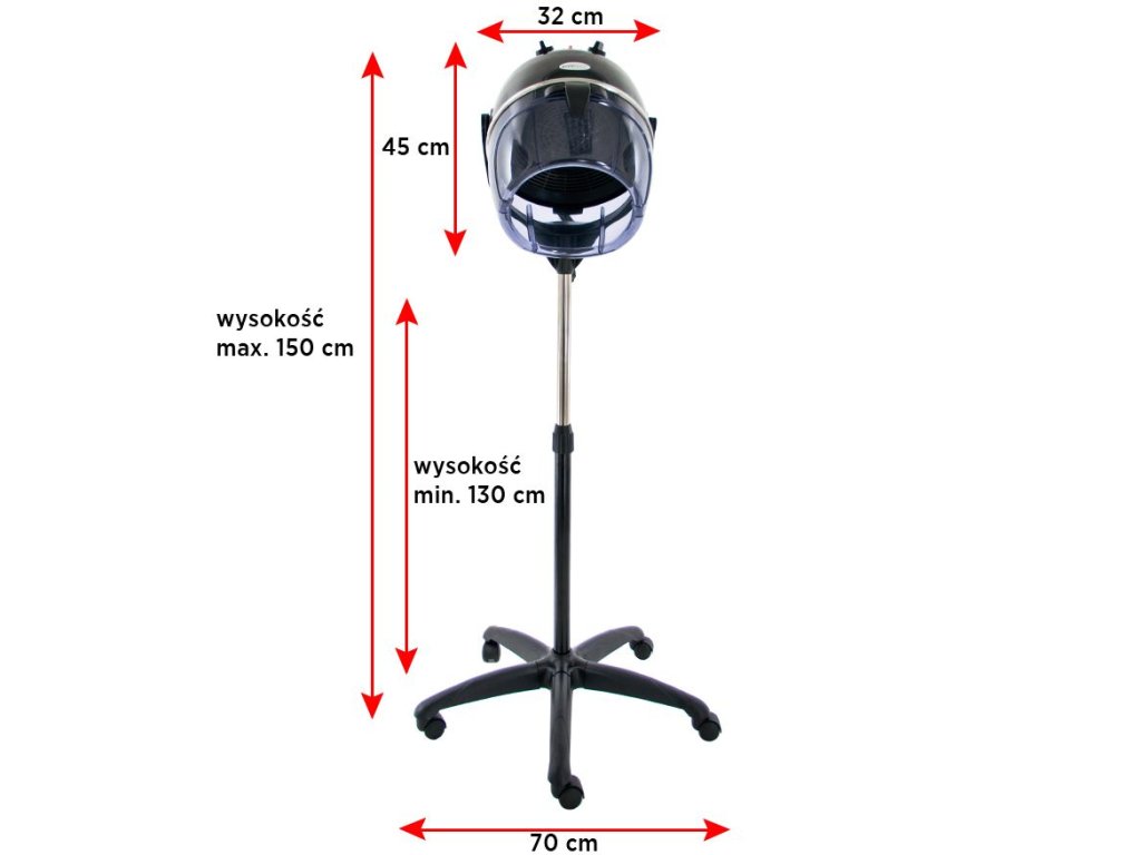 Die Trockenhaube Gabbiano befindet sich auf einem höhenverstellbaren Stativ. Das Gebläse besitzt zwei Geschwindigkeiten.Heizelemente aus rostfreiem Stahl
