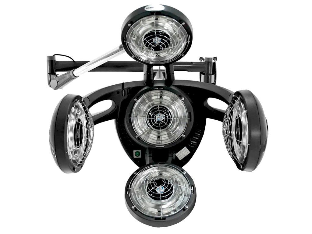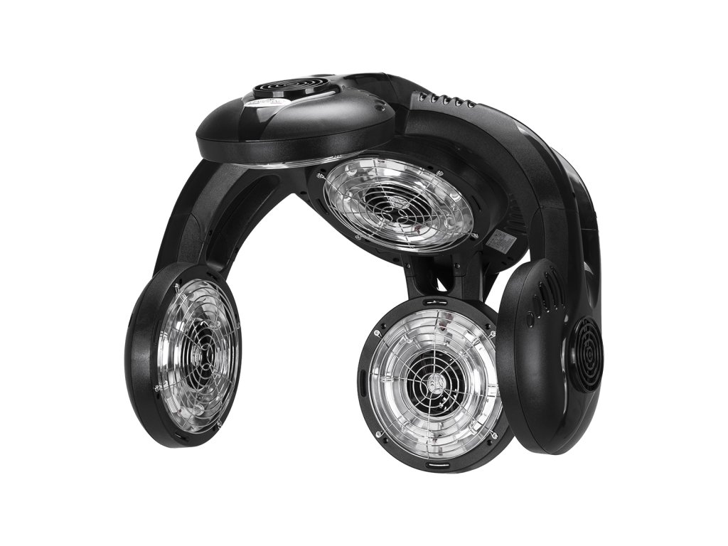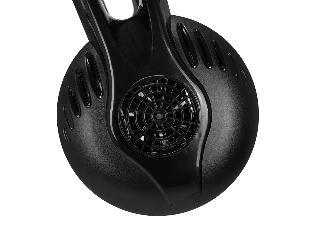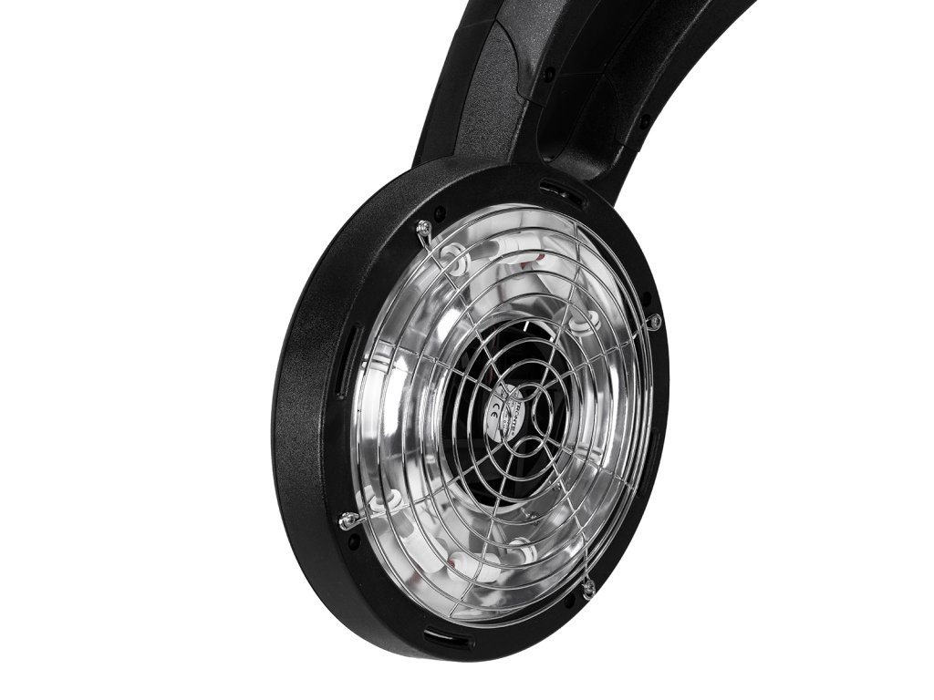 Die futuristische Gehäuse aus strapazierfähigem Kunststoff in Schwarz verleiht dem Gerät ein modernes und einzigartiges Aussehen, sodass es in die meisten Innenräume passt. Es ist zudem langlebig und leicht zu reinigen. Die Stabilität wird durch die vierbeinige Basis mit Rollen gewährleistet, die Mobilität garantiert. Die Montageoption und das verstellbare Stativarm sorgen für einen komfortablen Betrieb und die Anpassung des Geräts an individuelle Bedürfnisse.
