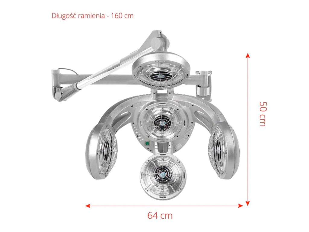 Der professionelle hängende Infrarottrockner Gabbiano GD-505W ist ein unverzichtbares Gerät für Dienstleistungen, bei denen hohe Temperaturen erforderlich sind, wie z. B. Färben, Bleichen, Haarbehandlungen, Trocknen und Dauerwellen. Das Gerät verkürzt die Behandlungszeit erheblich, sodass mehr Kunden aufgenommen werden können, bei gleichbleibend hoher Qualität der Salon-Dienstleistungen.