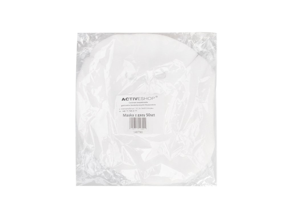 Einweg-Gasmaske, die unter anderem als Träger für die Anwendung von Gips-, Kräuter-, Pasten-, Algen- oder Tonmasken verwendet wird.