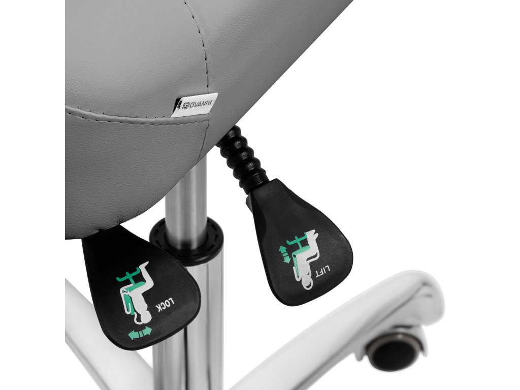 Der Giovanni Kosmetikstuhl – Sattelhocker 1005 in Grau ist ein professioneller Podologiehocker, der sich durch eine ergonomische Form, hohe Verarbeitungsqualität und vielseitige Einsatzmöglichkeiten in jedem Kosmetiksalon, Schönheitssalon, Fußpflegestudio oder Friseursalon auszeichnet.