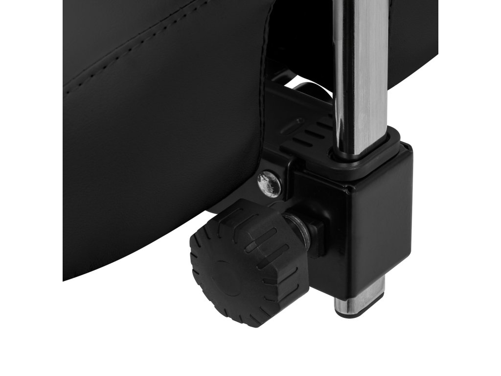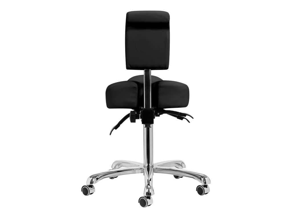 Die gepolsterte, konturierte Rückenlehne lässt sich in Höhe und Neigung manuell anpassen und unterstützt ideal die Lendenwirbelsäule. Das reduziert die Ermüdung bei langen Behandlungen und sorgt für eine gesunde Sitzhaltung – ein entscheidender Vorteil für Kosmetikerinnen, Podologen, Massagetherapeuten oder Stylisten. Der ergonomisch geformte Sitz ist durch Gaslift höhenverstellbar (55–72 cm) und zusätzlich mit einem Wippmechanismus mit Blockierfunktion ausgestattet, um die perfekte Position zu finden.
