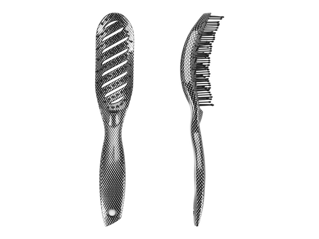 Ausgestattet mit einem durchbrochenen Korpus, der eine effektive Luftzirkulation während des Trocknens ermöglicht. Dies überträgt sich wiederum auf einen besseren Schutz der Haare vor dem Einfluss hoher Temperaturen und verbessert den Komfort beim Frisieren. Das einzigartige Faserende minimalisiert das Risiko, die Spitzen zu reißen, was die Haare zusätzlich schädigen kann.