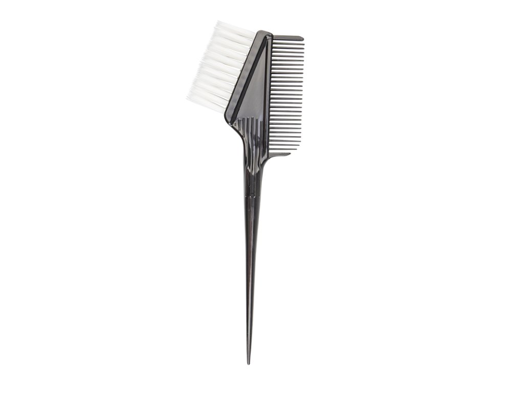 Ein Pinsel mit Kamm zum Auftragen von Haarfärbemittel. Eine perfekte 2-in-1-Lösung: Der Kamm kämmt das Haar und erleichtert das Auftragen von Haarfärbemittel, der Pinsel hilft, es präzise zu verteilen.