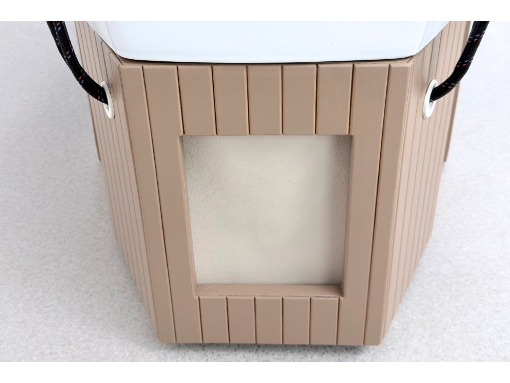 Die Liege wird ohne Wassererhitzer und ohne Bedienfeld geliefert. Erforderlich ist der Anschluss an Warm- und Kaltwasser sowie an den Abfluss.