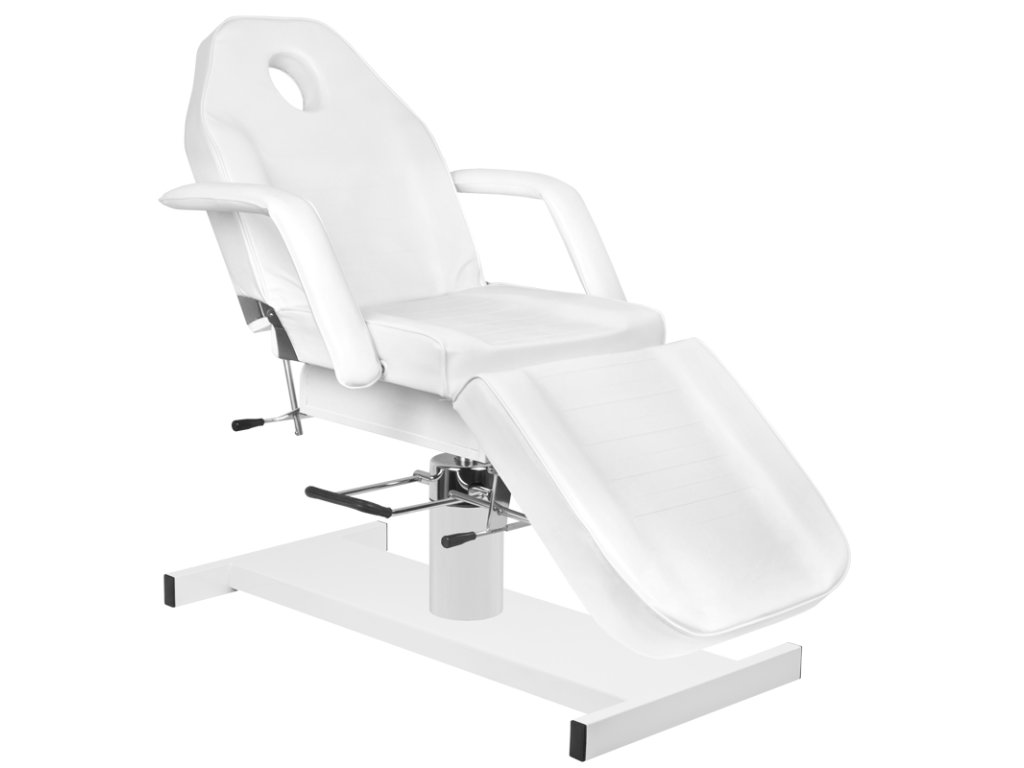 Die Hydraulische Kosmetikliege A-210 in Weiß ist ein funktionelles und zuverlässiges Möbelstück für Kosmetikstudios, Massagesalons oder Tattoostudios. Die Höhe lässt sich mithilfe einer hydraulischen Pumpe bequem verstellen (von 64 cm bis 80 cm), während die Liege dank der drehbaren Konstruktion besonders flexibel einsetzbar ist. Die drehbare Funktion kann durch eine mechanische Verriegelung gesichert werden, um Stabilität während der Behandlung zu gewährleisten.