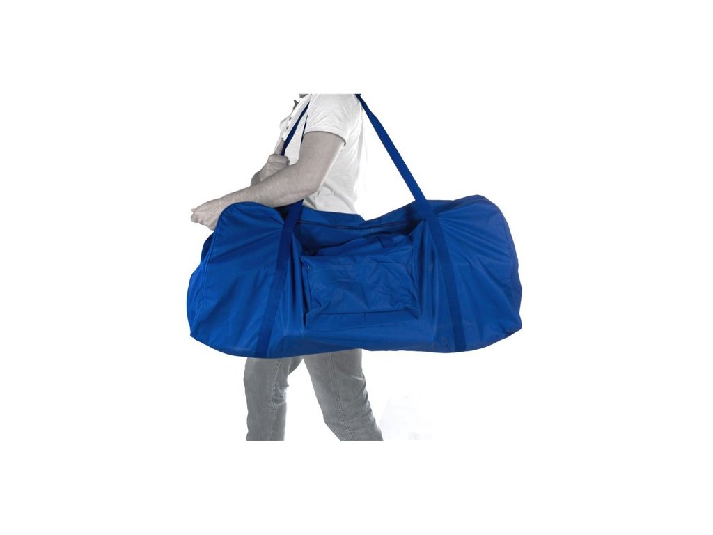 Zum Set gehört eine blaue Polyester-Tasche, die den Transport und die Aufbewahrung des Tisches erleichtert. Dadurch kann der Tisch bequem transportiert oder sicher gelagert werden.