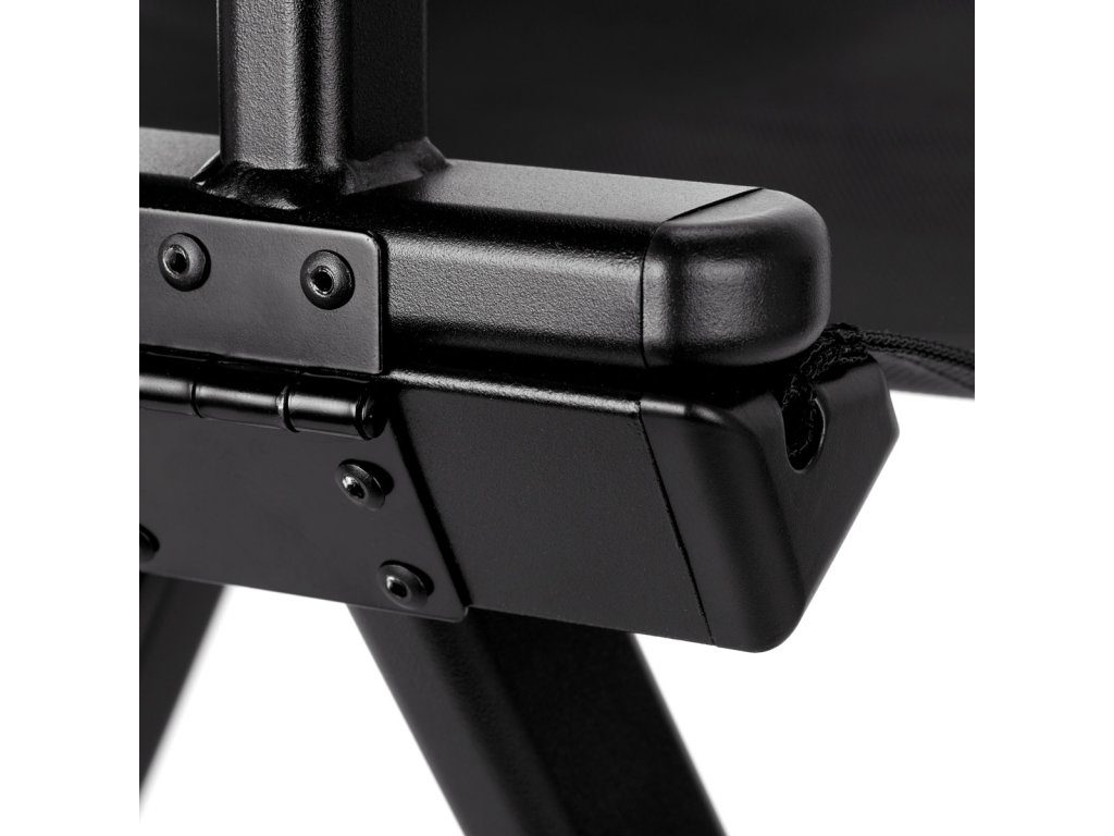 Der Stuhl verfügt über ein Verriegelungssystem, dank dem er während des Gebrauchs Stabilität bietet. Einmal entriegelt, können sie leicht zusammengefaltet werden, wodurch sie viel einfacher zu lagern und zu transportieren sind. Minimalistische Armlehnen und Fußstütze mit einer Breite von fast 40 cm bieten dem Benutzer Komfort beim Make-up. Zusammen mit der Rückenlehne ermöglichen sie es Ihnen, die richtige Position einzunehmen, was besonders bei längeren Behandlungen wichtig ist. Die angewandten Lösungen machen den Stuhl äußerst praktisch, bieten viel Platz zum Arbeiten für Menschen, die mobile Dienste anbieten, und funktionieren auch unter den ungewöhnlichsten Bedingungen.