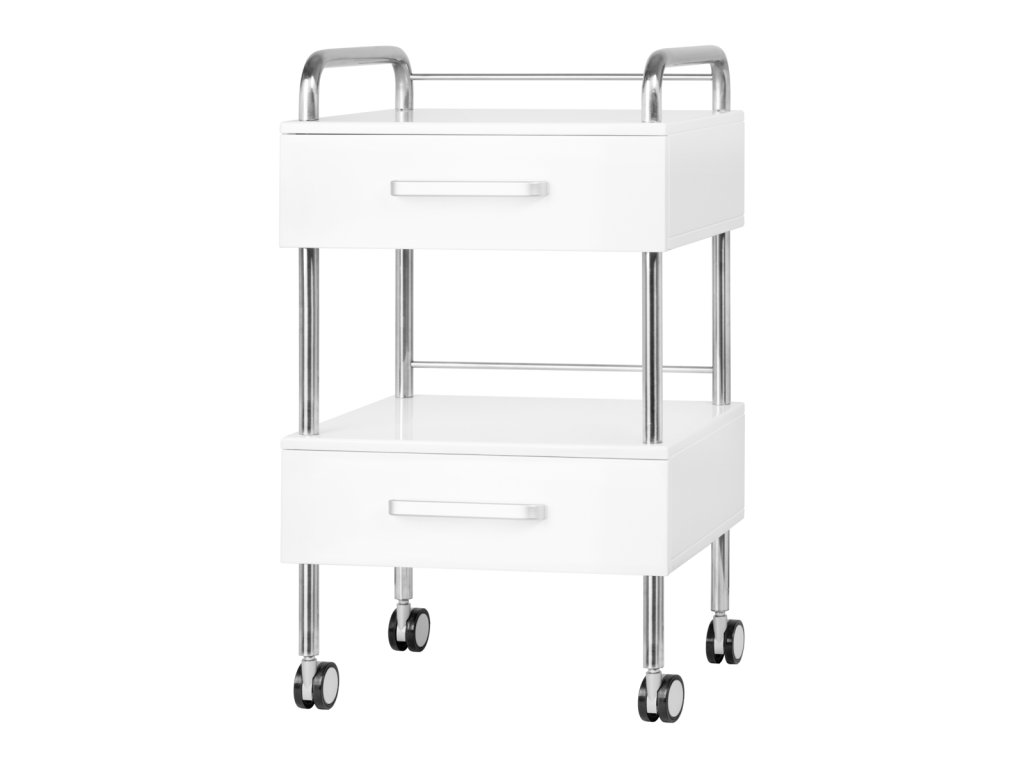 Der Kosmetikwagen 6051 in Weiß ist ein hochwertiger, funktioneller Helfer für den professionellen Einsatz in Kosmetikstudios, Podologiepraxen und SPA-Bereichen. Ausgestattet mit zwei geräumigen Schubladen und einem stabilen Regalboden eignet er sich ideal zur Aufbewahrung von Kosmetikzubehör, Werkzeugen und Geräten wie z. B. Fräsmaschinen oder Sterilisatoren.