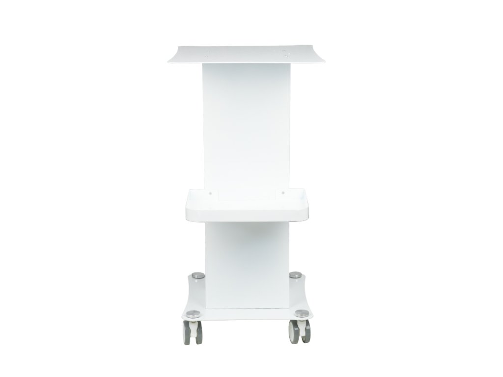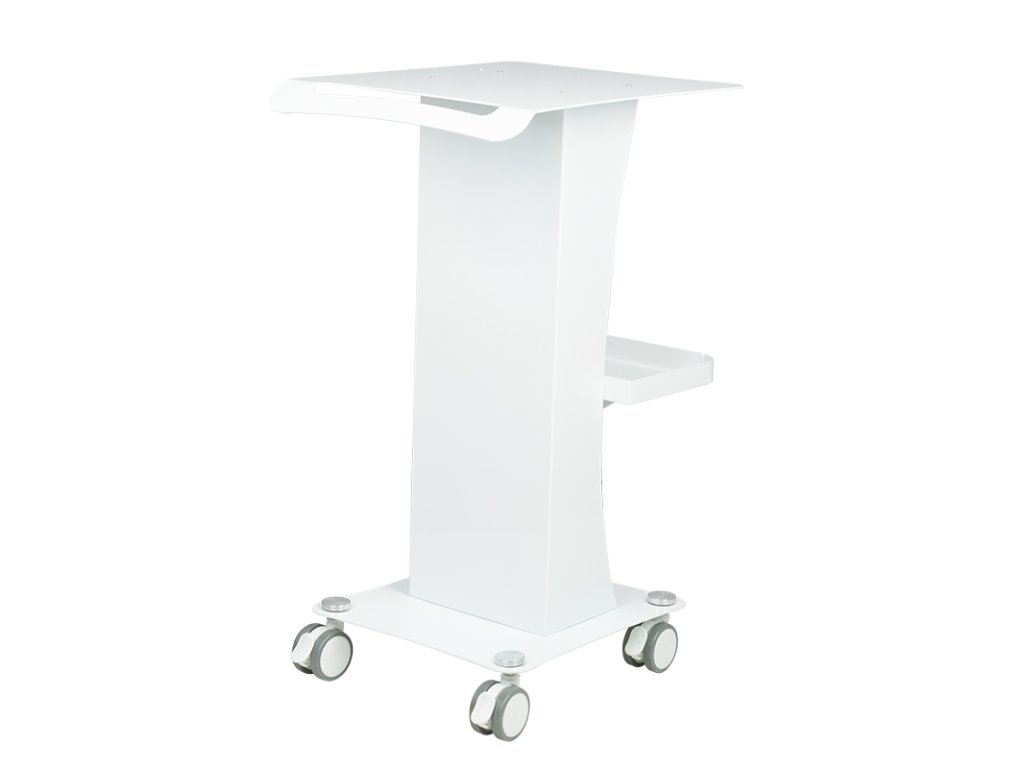 Ein funktioneller Metall-Kosmetikwagen mit Gummirädern und Verriegelungsfunktion. Er ist ideal als Tisch für Kosmetikgeräte geeignet. Er verfügt über stabile Ablagen für Kosmetikgeräte und Zubehör sowie Rollen für ein reibungsloses Verschieben. Das Möbelstück sorgt für den Arbeitskomfort.