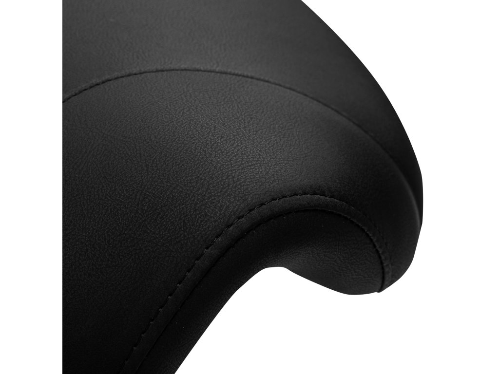 Der Hocker steht auf einem stabilen 5-Stern-Fußkreuz mit matter Oberfläche, das auch bei intensiver Nutzung sicheren Halt bietet. Der hochwertige Kunstlederbezug in schwarzer Farbe ist resistent gegen Feuchtigkeit, Schmutz und Abnutzung, während die Schaumpolsterung ihre Form auch bei Dauerbelastung behält.