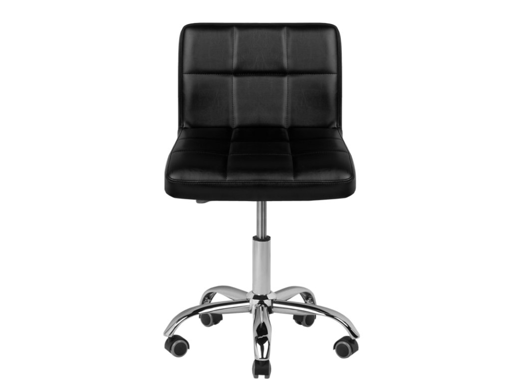 Ein moderner Kosmetikhocker in Schwarz. Sehr bequemer Sitz zeichnet sich durch modernes Design aus und verfügt über schöne Naht. Hochwertiges Ökoleder ist eine Garantie für die leichte Pflege dieses Möbelstücks. Es verfügt über verstellbare Höhe (oben-unten). Gummierte Rollen.Technische Daten: