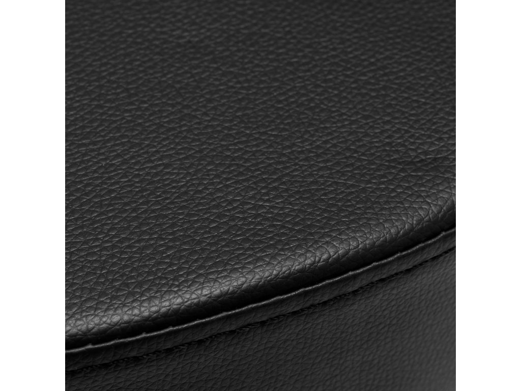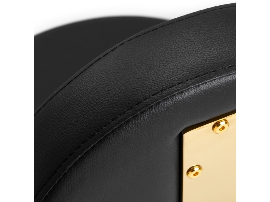 Die fünfarmige Basis sorgt für Stabilität und Sicherheit, auch bei dynamischeren Bewegungen und häufigen Positionswechseln. Ausgestattet mit langlebigen Rädern sorgt für eine hohe Mobilität, die es Ihnen ermöglicht, sich frei im Wohnzimmer oder Büro zu bewegen. Kunstlederpolsterung in Schwarztönen, die nicht nur strapazierfähig, sondern auch leicht zu reinigen ist. Ästhetische Säume und Steppungen verleihen ihm einen einzigartigen Look, während goldene Zierelemente einen luxuriösen Charakter verleihen, der die Aufmerksamkeit auf sich zieht. Die einzigartige Kombination aus Eleganz und Komfort macht den Hocker zu einem unersetzlichen Werkzeug bei der Arbeit eines jeden Profis.