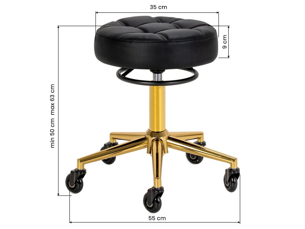 Der Kosmetikhocker Eleganz schwarz-gold ist die ideale Wahl für professionelle Kosmetikstudios, Friseursalons, Barberstudios und spezialisierte Einrichtungen, in denen Komfort, Ergonomie und ein repräsentatives Erscheinungsbild im Vordergrund stehen. Die zeitlose schwarz-goldene Farbkombination wirkt besonders edel und verleiht dem Interieur einen exklusiven Charakter.
