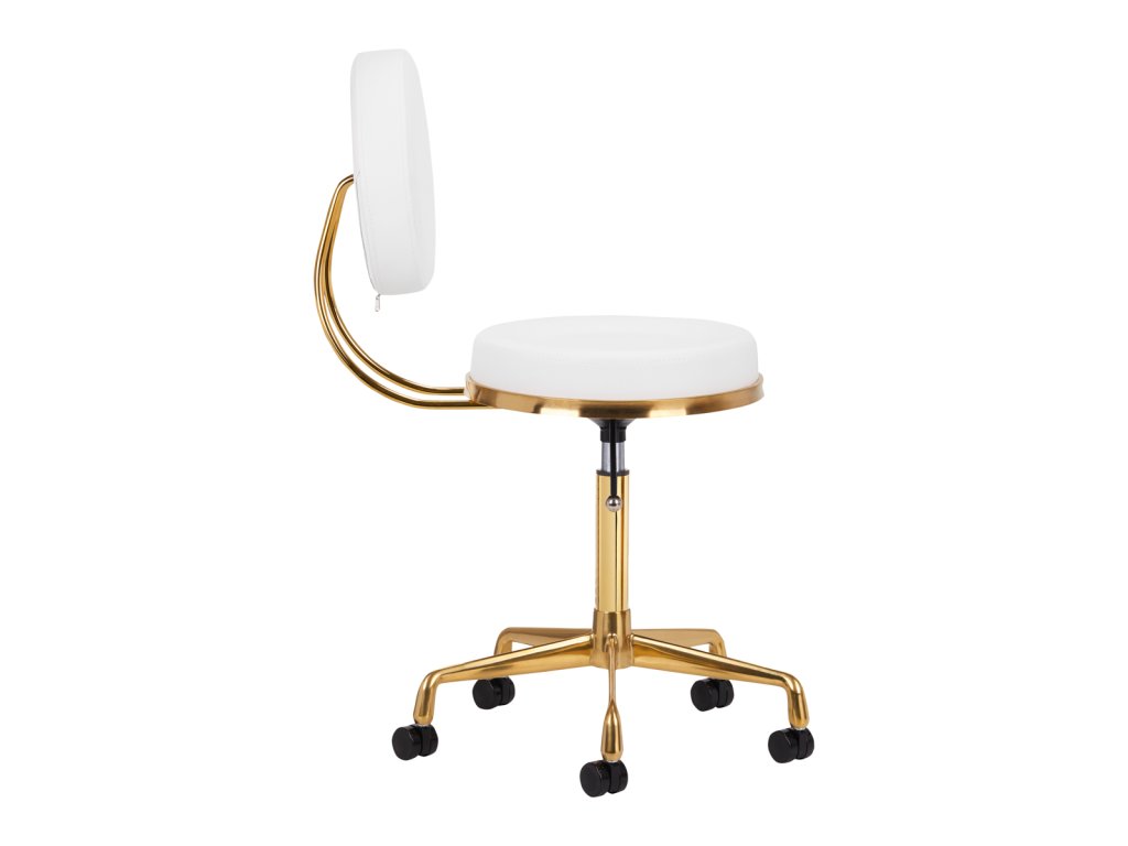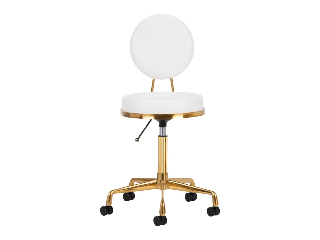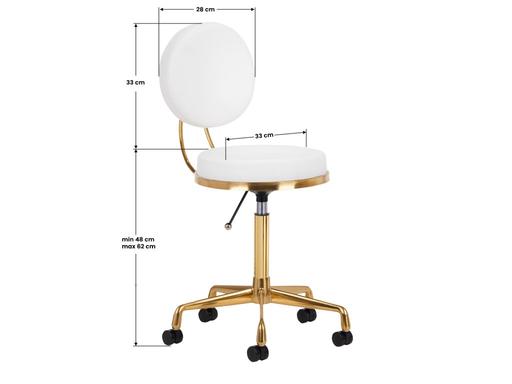 Der Kosmetikhocker H5 Gold Weiß kombiniert luxuriöse Optik mit hoher Funktionalität – ein perfekter Begleiter für jeden Kosmetiksalon, Friseursalon oder Heimstudio. Die elegante Kombination aus mattem Gold und klassischem Weiß sorgt für ein stilvolles Erscheinungsbild, das zu modernen wie klassischen Interieurs passt.