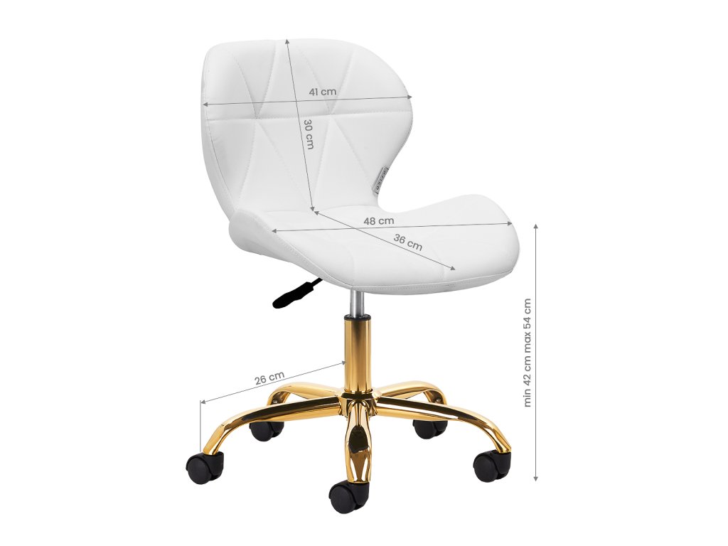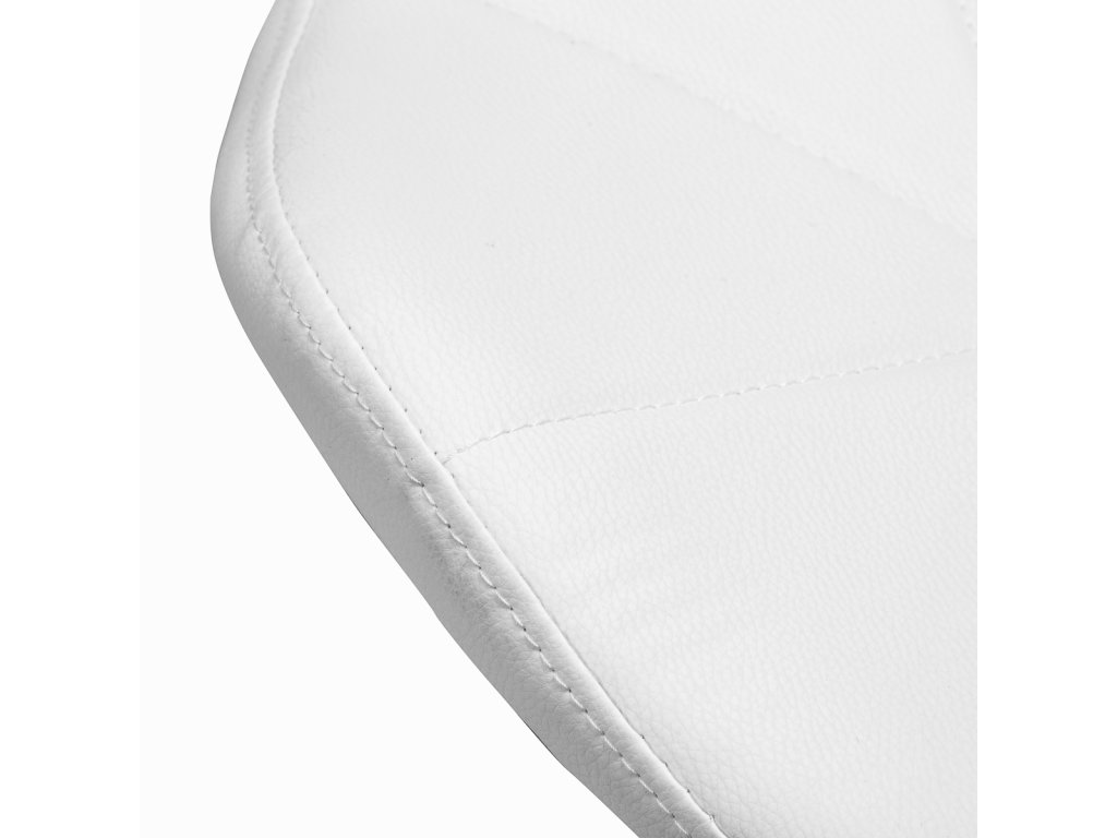 Der Sitz mit konturierter Rückenlehne ist mit pflegeleichtem, feuchtigkeitsbeständigem Kunstleder in Weißtönen bezogen und garantiert Komfort selbst bei längeren Behandlungen wie Make-up, Augenbrauen-Styling, Pediküre oder Büroarbeiten. Der weiche Bezug lässt sich leicht reinigen und wirkt gleichzeitig elegant und modern.