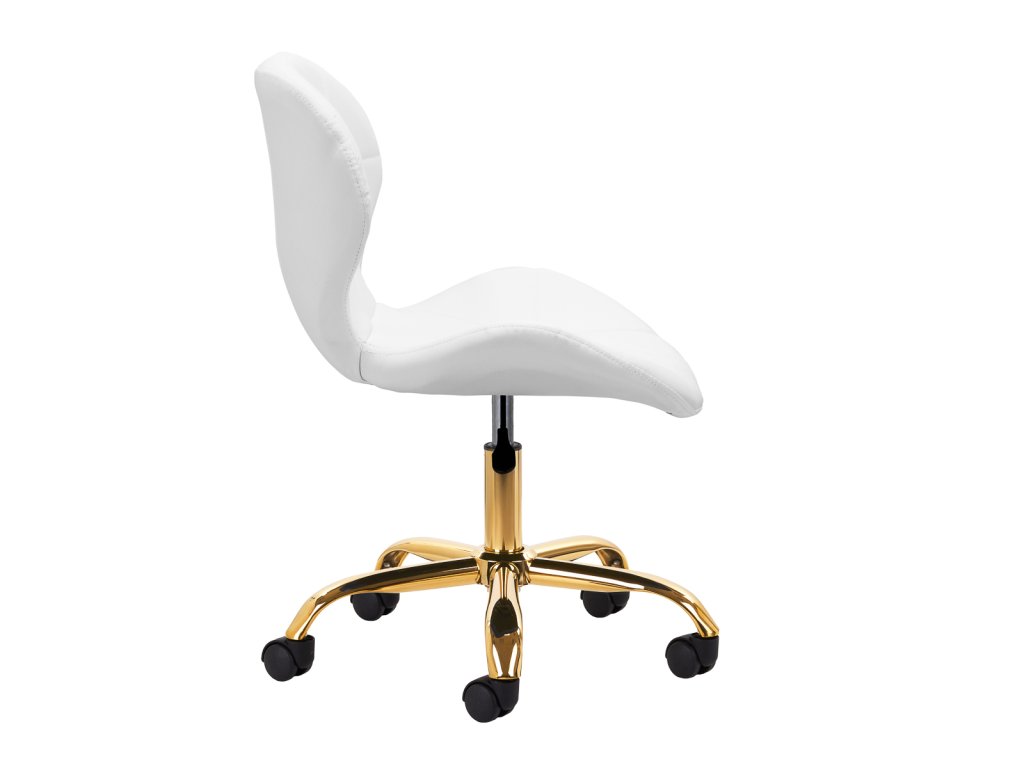 Die elegante fünfarmige Basis in Goldoptik ist mit gummierten Kunststoffrollen ausgestattet, die für leises, kratzerfreies Gleiten sorgen. Dies ermöglicht eine einfache Bewegung auf verschiedenen Bodenarten und maximale Mobilität im Studioalltag. Die hochwertigen Materialien und die stilvolle Steppung unterstreichen das moderne Design und machen den Hocker zu einem stilvollen Bestandteil Ihrer Studioausstattung.