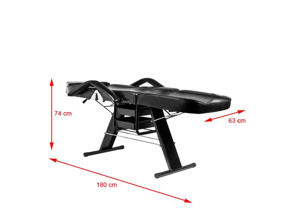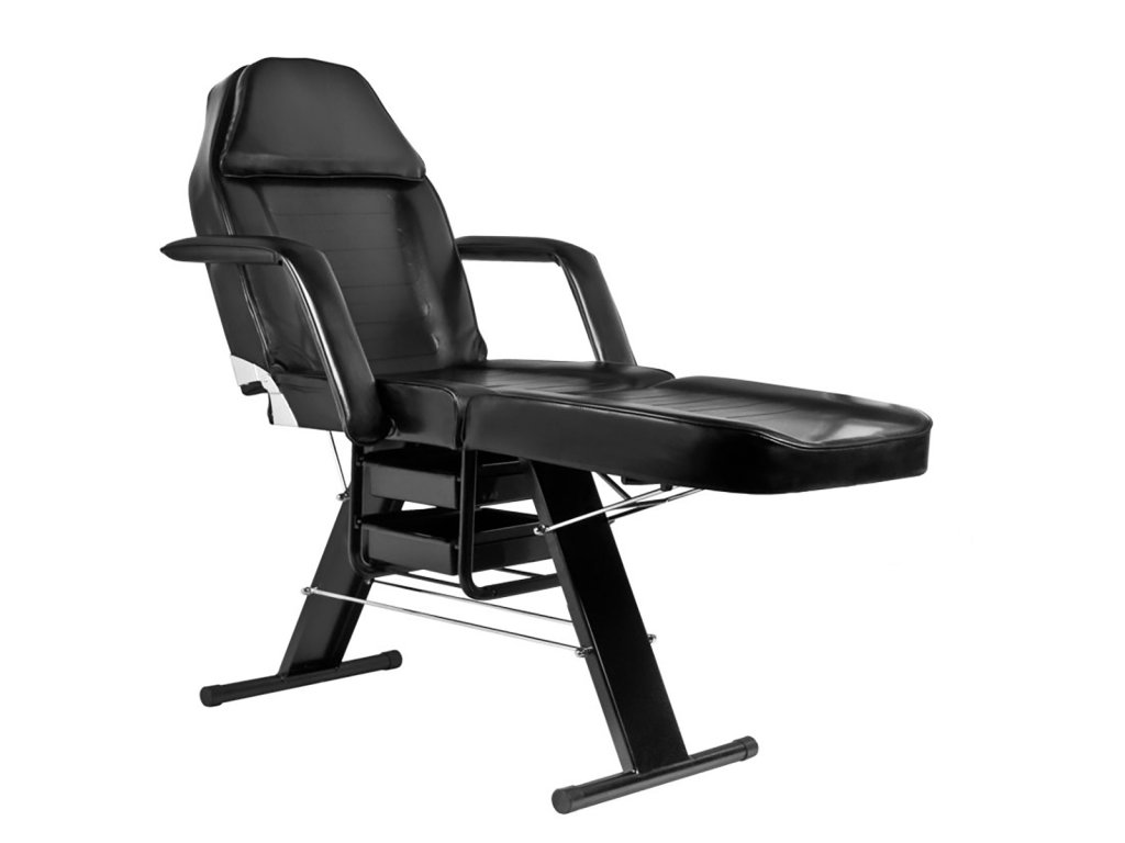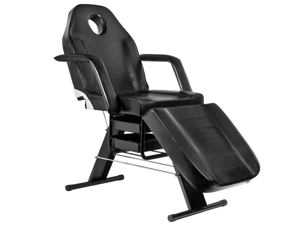 Die Kosmetikliege 202 BASIC mit einem Gesichtsausschnitt in der Kopfstütze und mit praktischen Aufbewahrungsladen. Sie ist ideal für Kosmetik, für vorteilhafte Gestaltung des Gesichts mit Make-up oder für Massage geeignet. Sie verfügt über Armlehnen und über einen Gesichtsausschnitt in der Kopfstütze, der bei Nichtgebrauch abgedeckt werden kann. Die Bespannung der Kosmetikliege ist leicht zu reinigen, aus dem Ökoleder hergestellt, erfüllt die strengen EU-Anforderungen, ist ästhetisch und besitzt vernickelte Metallteile. Auf der Rückenlehne ist ein Bügel für Einwegbetttuch, Servietten oder Handtuch befestigt. Die Liege ist in Schwarz erhältlich.