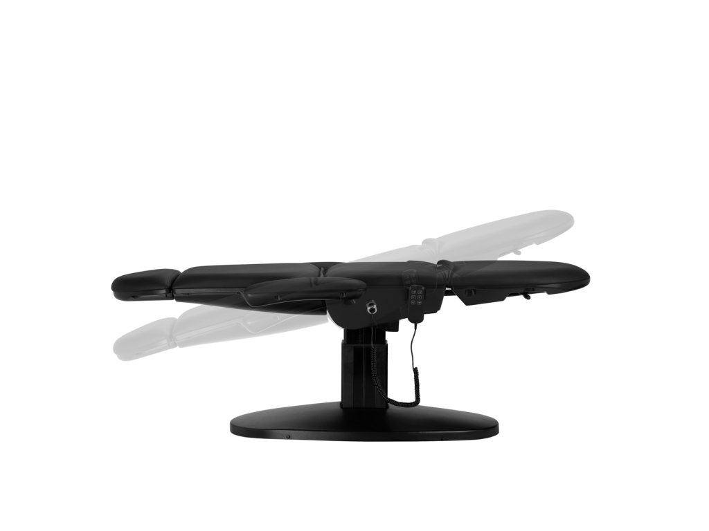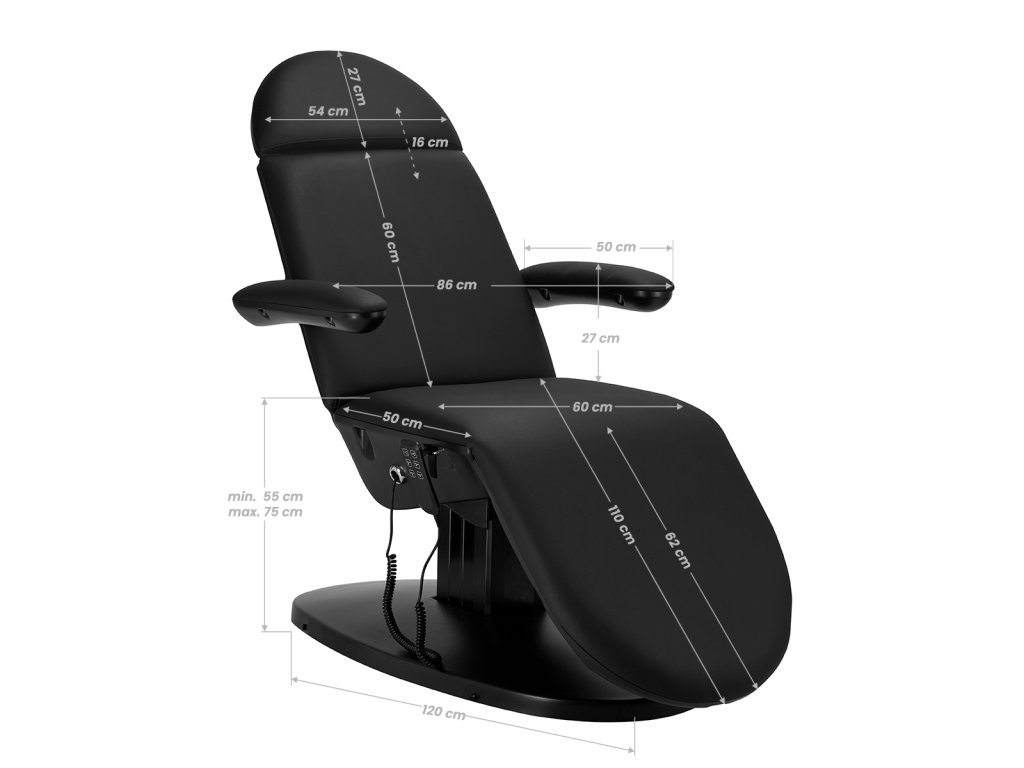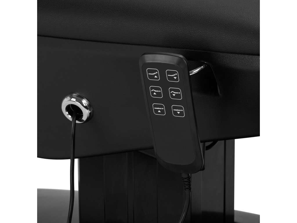 Mit Hilfe einer einfach zu bedienenden Fernbedienung können Sie den Sitz mühelos in 3 Ebenen verstellen – er verfügt über Höhenverstellung, Rückenlehne und Halterungsverstellung. Darüber hinaus können Sie mit dem manuellen Hebel den Neigungswinkel der Fußstütze einstellen. Dank dessen können Sie den Stuhl sanft in einer bequemen Position der Couch positionieren, wodurch Sie Behandlungen an Gesicht und Körper bequem durchführen können. Darüber hinaus erreicht es, wenn es vollständig ausgeklappt ist, eine Länge von über 2,3 Metern, was es zu einer hervorragenden Unterstützung für größere Benutzer macht. Auf der rechten Seite des Sitzes befindet sich ein spezieller Metallgriff zum Aufhängen der Fernbedienung. Dies macht es einfach zu verstauen und macht es immer zur Hand.