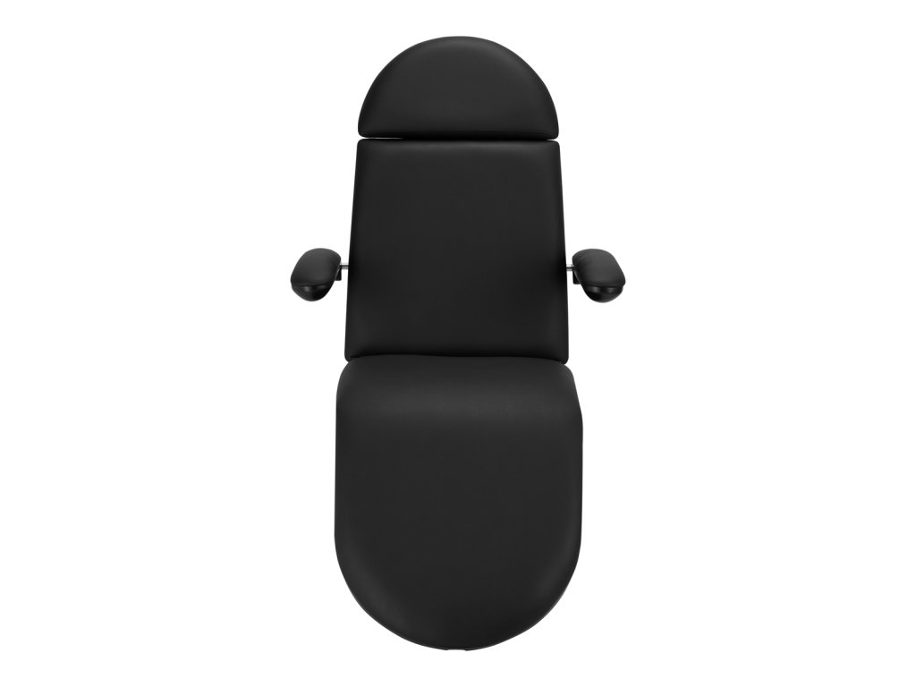 Die Kopfstütze ist ausziehbar, was dazu beiträgt, die Ausrüstung an die Bedürfnisse von Benutzern unterschiedlicher Körpergröße anzupassen und während der Behandlungen eine stabile Kopfstütze zu bieten. 180º bewegliche Armlehnen erleichtern das Sitzen und bieten einen bequemen Zugang für die Person, die den Eingriff durchführt. Die angewandten Lösungen beeinflussen maßgeblich den hohen Bedienkomfort und die Ergonomie der Arbeit.