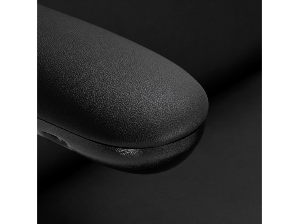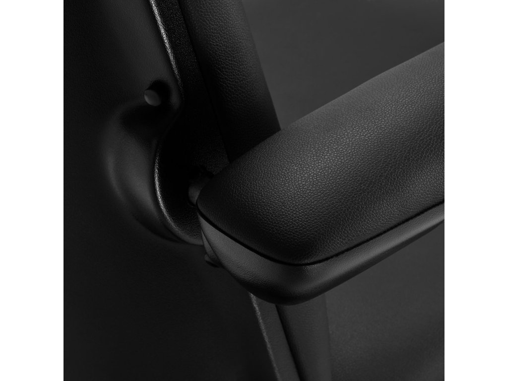 Die solide Basis sorgt für Stabilität, Haltbarkeit des Produkts und Arbeitskomfort. Der Stuhl ist mit Schaumstoff gefüllt und mit einer angenehm zu berührenden, matten Lederimitation in Schwarztönen bezogen. Dank der Verwendung eines solchen Materials ist das Gerät feuchtigkeitsbeständig und leicht zu reinigen. Die stromlinienförmige Form und die Einfachheit des Finishs lassen es sehr ästhetisch aussehen und passen in fast jedes Interieur.