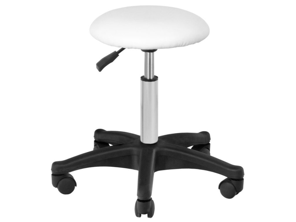 Mit einem Sitzdurchmesser von 33 cm und einer hydraulischen Höhenverstellung von 38 bis 50 cm bietet der Hocker Komfort und Flexibilität bei jeder Behandlung. Das 5-armige Untergestell mit leichtgängigen Kunststoffrollen sorgt für Stabilität und ermöglicht eine einfache Bewegung im Raum.