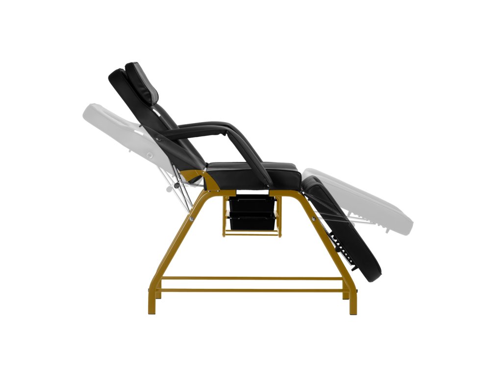 Mit Hilfe eines Hebels an Federn ist es möglich, die Winkel, in denen sich die Fußstütze und die Rückenlehne befinden, stufenlos einzustellen. Dies ermöglicht eine optimale Anpassung an die individuellen Bedürfnisse, für eine korrekte und komfortable Behandlung und den Komfort der Nutzung. Der Stuhl kann bis zur Position einer Couch ausgeklappt werden, was seine Funktionalität deutlich erhöht.