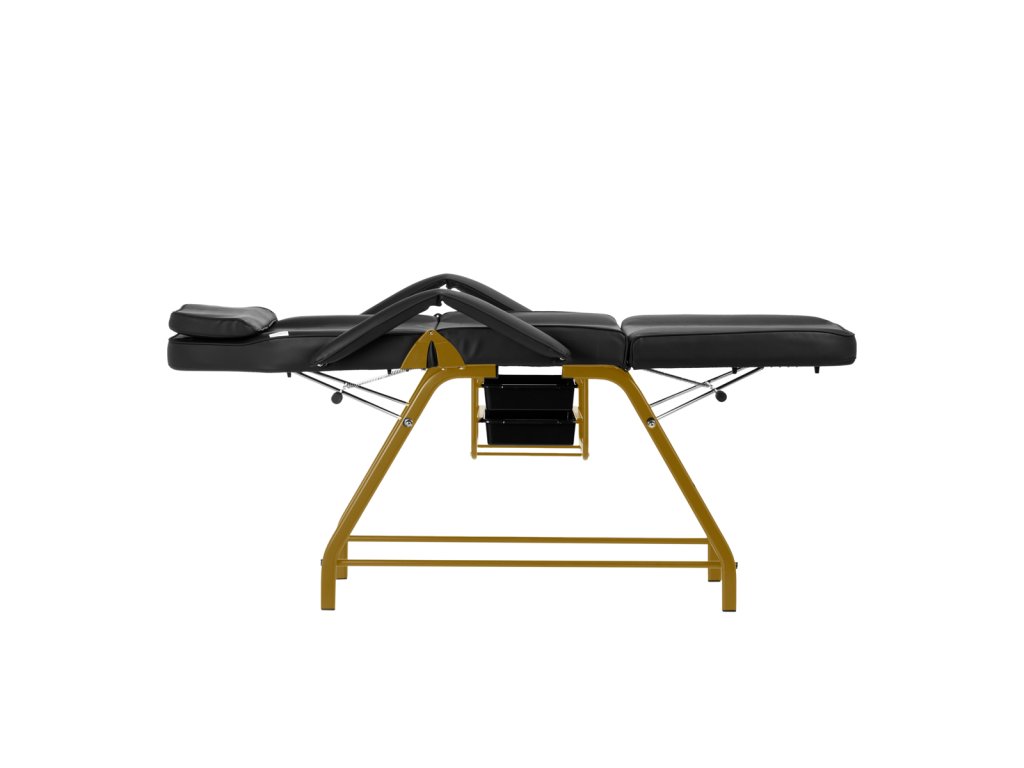 Armlehnen garantieren dem Benutzer eine angemessene Unterstützung und Komfort während der Behandlungen. Bei Bedarf können sie leicht entfernt werden, wodurch die Person, die die Dienstleistung erbringt, einen leichteren Zugang zu den Bereichen hat, in denen sie gerade arbeitet. Diese in zwei Hälften geteilten Elemente sind beweglich, so dass sie gut passen, wenn die Position der Rückenlehne geändert wird.