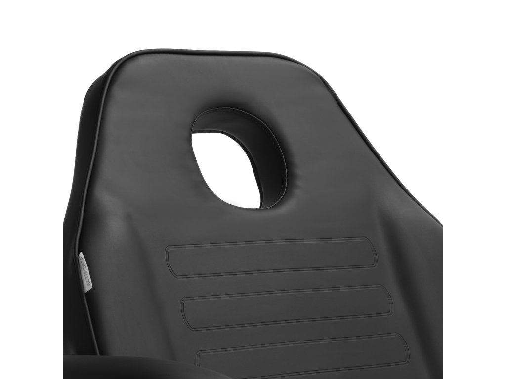Praktische Kunststoffküvetten, die unter dem Sitz platziert sind, bieten einfachen Zugang zu den notwendigsten Instrumenten. Ausziehbehälter sind langlebig und leicht zu reinigen und tragen zusätzlich dazu bei, den Arbeitsplatz sauber zu halten. Dank des Lochs in der Kopfstütze, das unter einem gut profilierten Kissen versteckt ist, eignet sich der Stuhl perfekt für Behandlungen, die auf dem Rücken durchgeführt werden, wie z.B. Massagen.