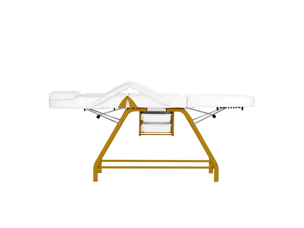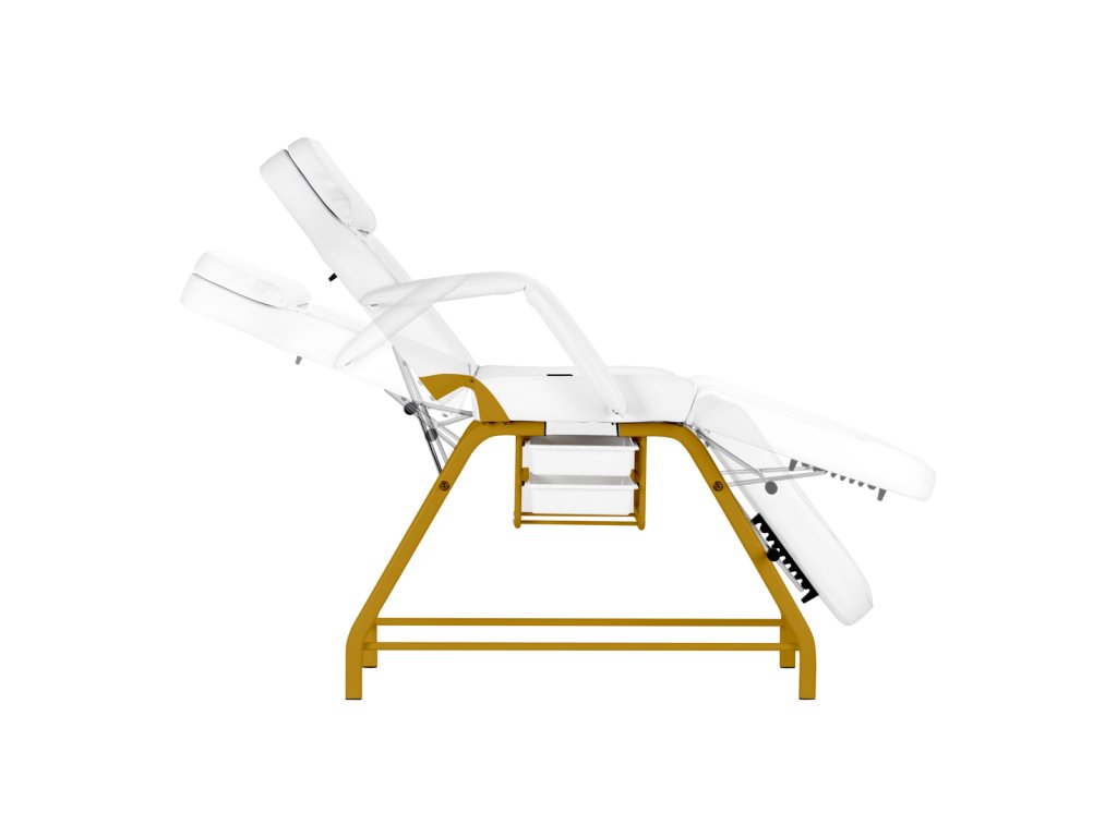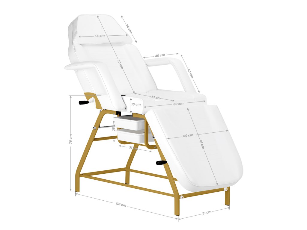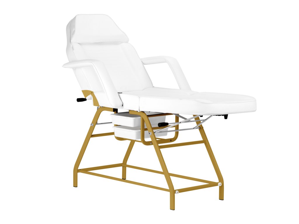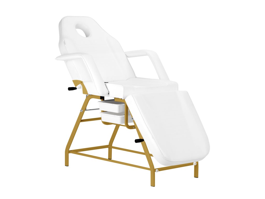 Der Kosmetikstuhl 557G mit zwei Küvetten ist ein praktisches Gerät, das die Arbeit in vielen spezialisierten Büros, einschließlich Kosmetik-, Massage- oder Tattoo-Büros, verbessert. Es eignet sich für Menschen, die ein einfaches, funktionales und gleichzeitig unverwechselbares Kosmetikmöbel suchen. Ausziehbare Behälter, die unter dem Sitz montiert sind, sorgen dafür, dass die wichtigsten Werkzeuge und Vorbereitungen immer griffbereit sind.