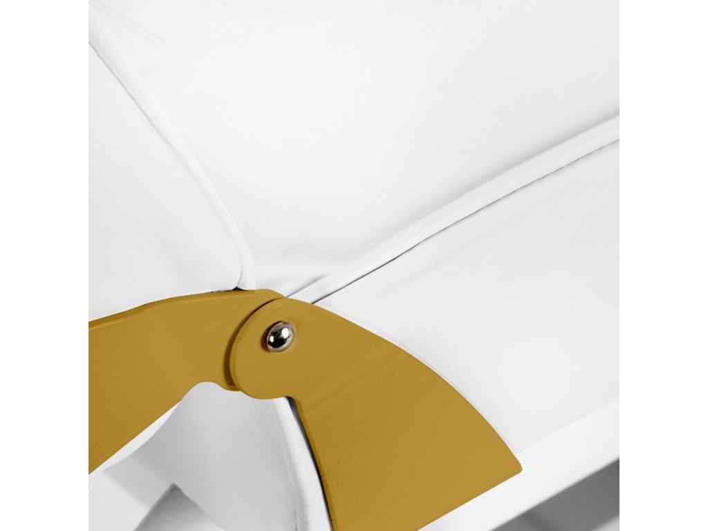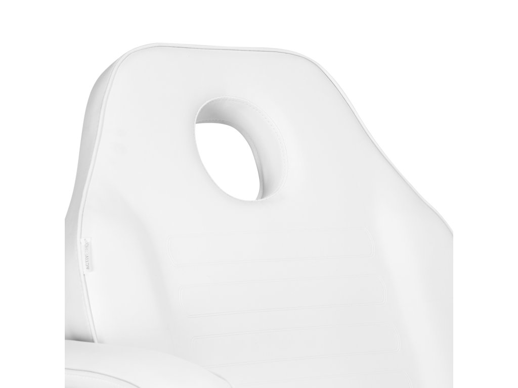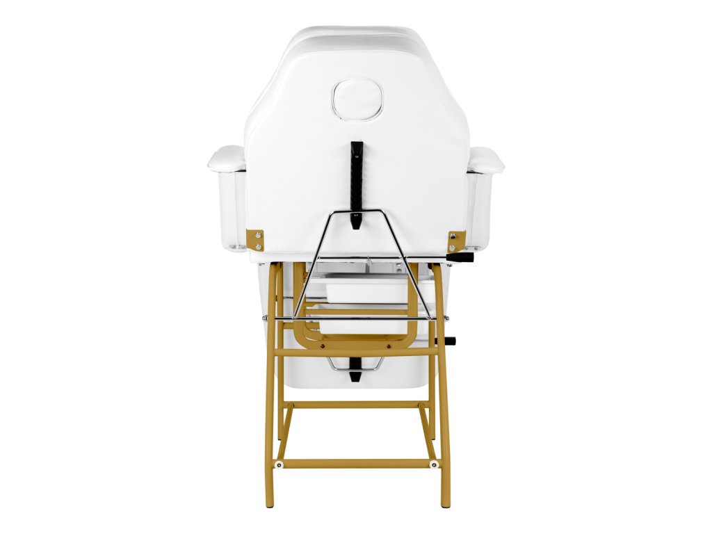 Armlehnen garantieren dem Benutzer eine angemessene Unterstützung und Komfort während der Behandlungen. Bei Bedarf können sie leicht entfernt werden, wodurch die Person, die die Dienstleistung erbringt, einen leichteren Zugang zu den Bereichen hat, in denen sie gerade arbeitet. Diese in zwei Hälften geteilten Elemente sind beweglich, so dass sie gut passen, wenn die Position der Rückenlehne geändert wird.