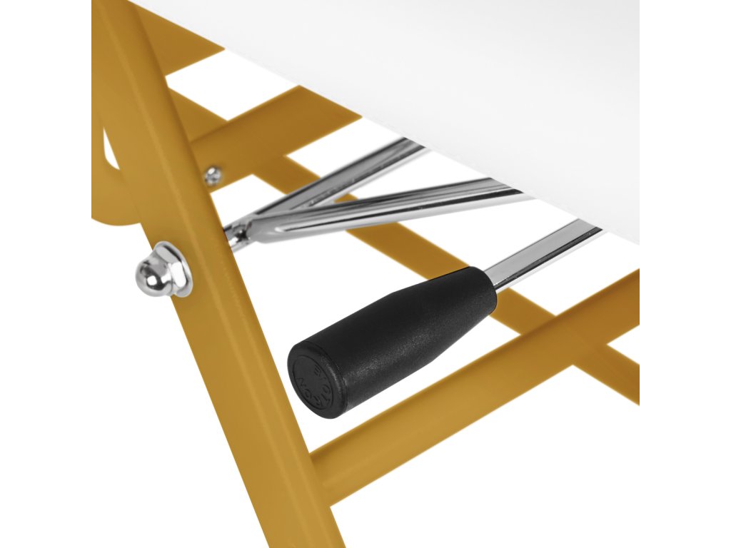 Mit Hilfe eines Hebels an Federn ist es möglich, die Winkel, in denen sich die Fußstütze und die Rückenlehne befinden, stufenlos einzustellen. Dies ermöglicht eine optimale Anpassung an die individuellen Bedürfnisse, für eine korrekte und komfortable Behandlung und den Komfort der Nutzung. Der Stuhl kann bis zur Position einer Couch ausgeklappt werden, was seine Funktionalität deutlich erhöht.