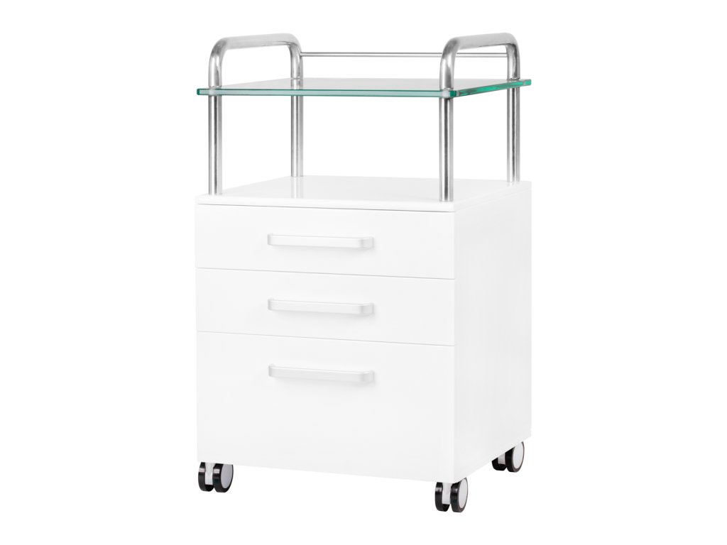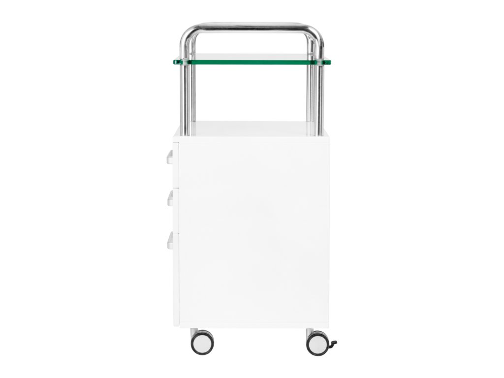 Dank seiner vier leichtgängigen Rollen lässt sich der Kosmetikwagen problemlos zwischen verschiedenen Behandlungsräumen transportieren. Die stabile Konstruktion und die hochwertigen Materialien garantieren eine lange Lebensdauer sowie maximalen Komfort und Funktionalität.