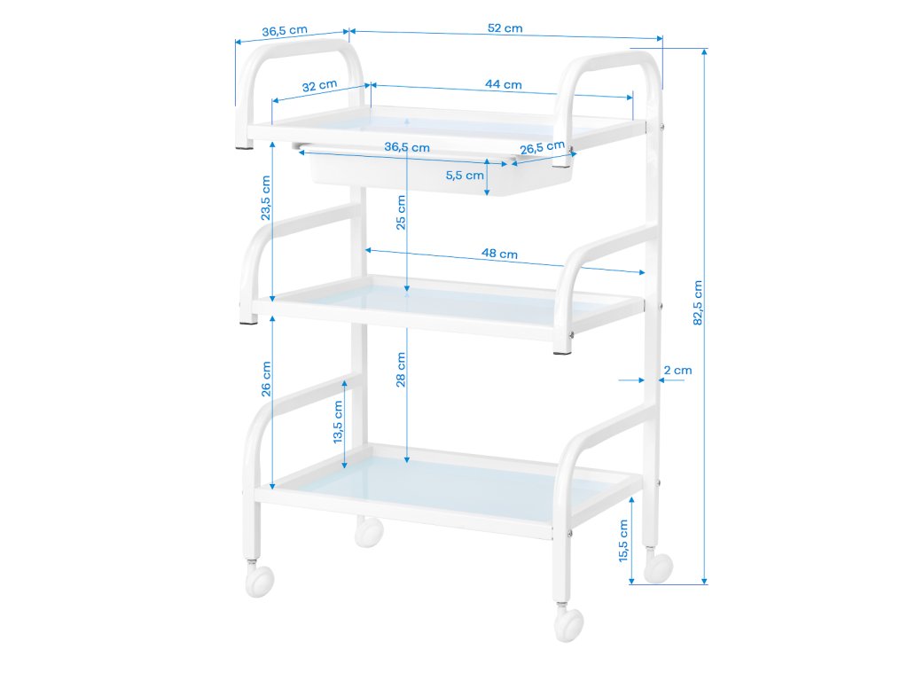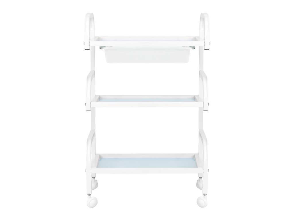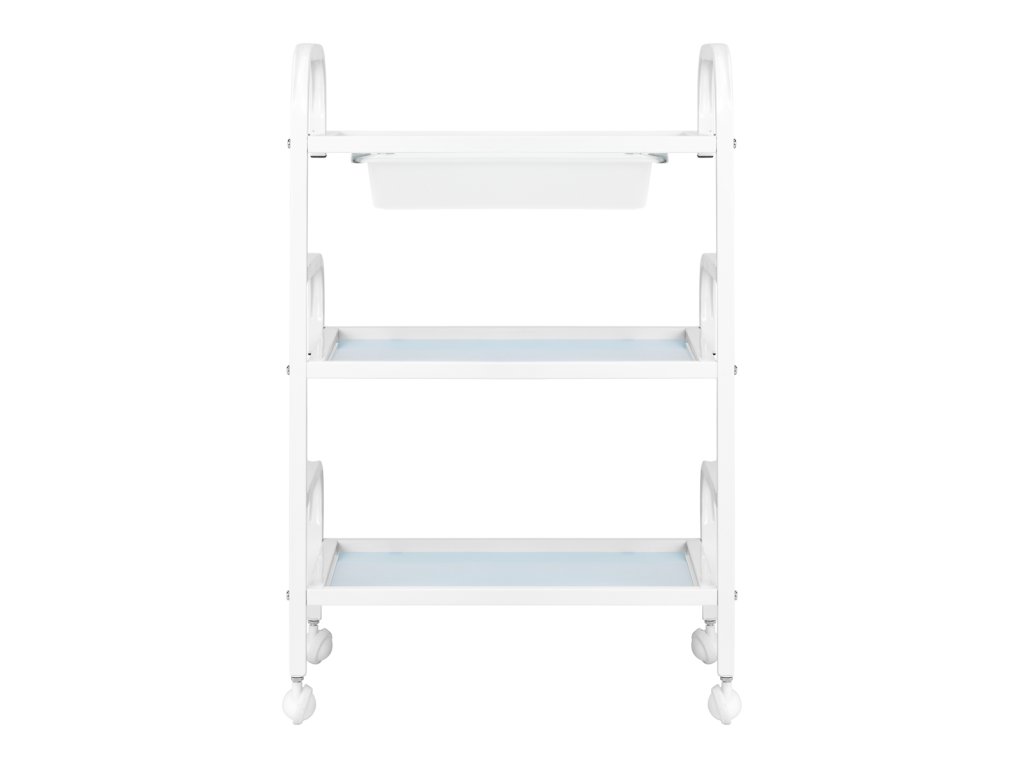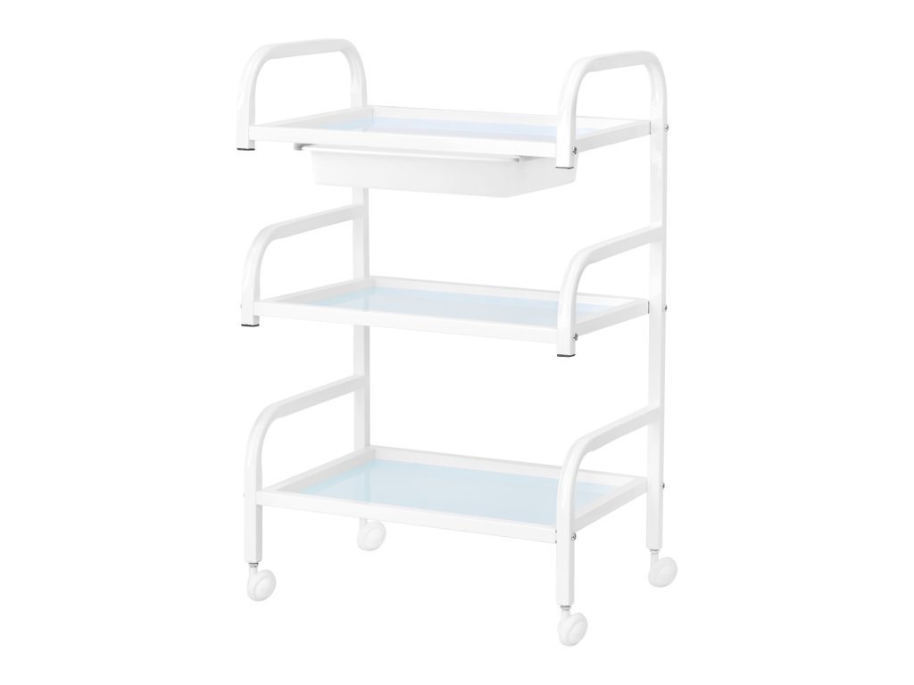 Der Kosmetikwagen Basic 121 Weiß von ACTIVESHOP ist ein funktionaler, stilvoller Helfer für Kosmetikstudios, SPA-Bereiche und Schönheitssalons. Dank seines durchdachten Designs vereint er praktische Funktionalität mit modernem Look und eignet sich perfekt für die tägliche Arbeit im professionellen Umfeld.