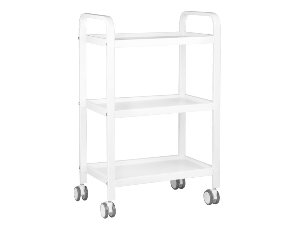 Seine leichte Konstruktion ermöglicht maximale Flexibilität bei der Arbeit, während die vier Rollen ein einfaches Verschieben zwischen Behandlungsräumen garantieren. Der Wagen ist ästhetisch gestaltet und fügt sich mit seiner klaren, weißen Optik nahtlos in moderne Studioeinrichtungen ein.