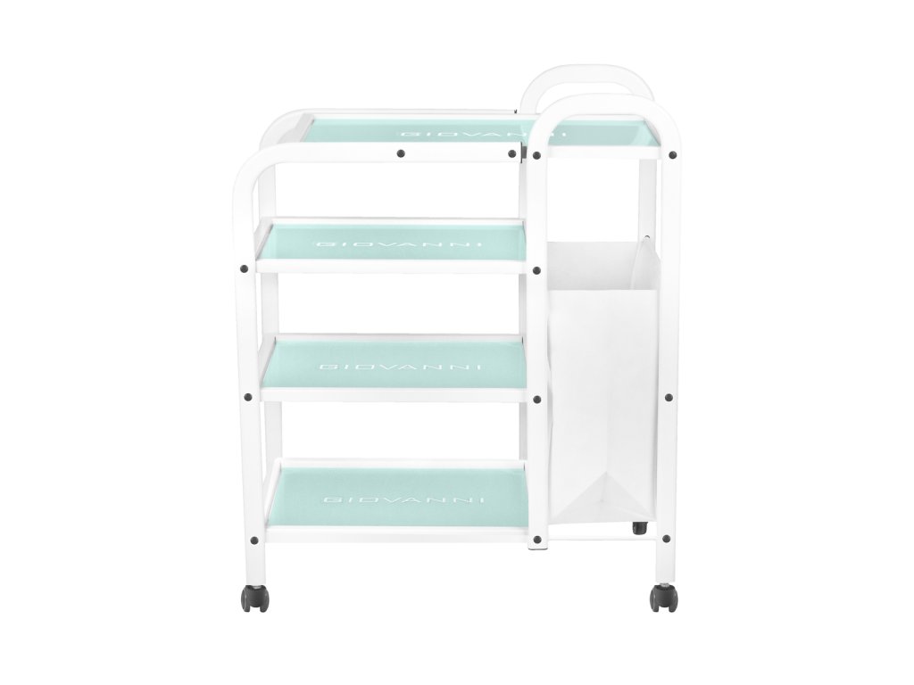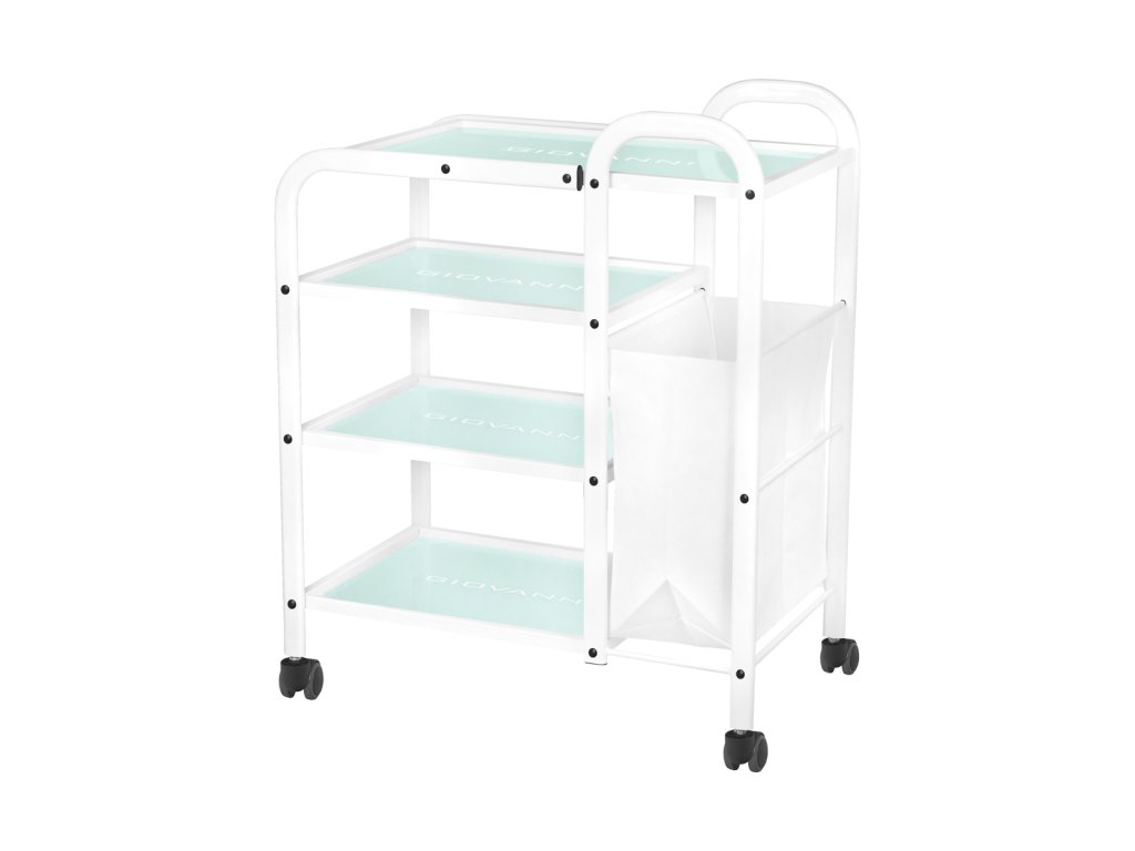 Der Kosmetikwagen Typ 1031 Giovanni Weiß wurde speziell für den professionellen Einsatz in Kosmetik- und SPA-Studios entwickelt. Die Kombination aus stabiler Metallkonstruktion, vier edlen Glasfächern mit eingraviertem GIOVANNI-Logo und praktischen Funktionselementen macht diesen Wagen zu einer idealen Wahl für anspruchsvolle Behandlungsumgebungen.