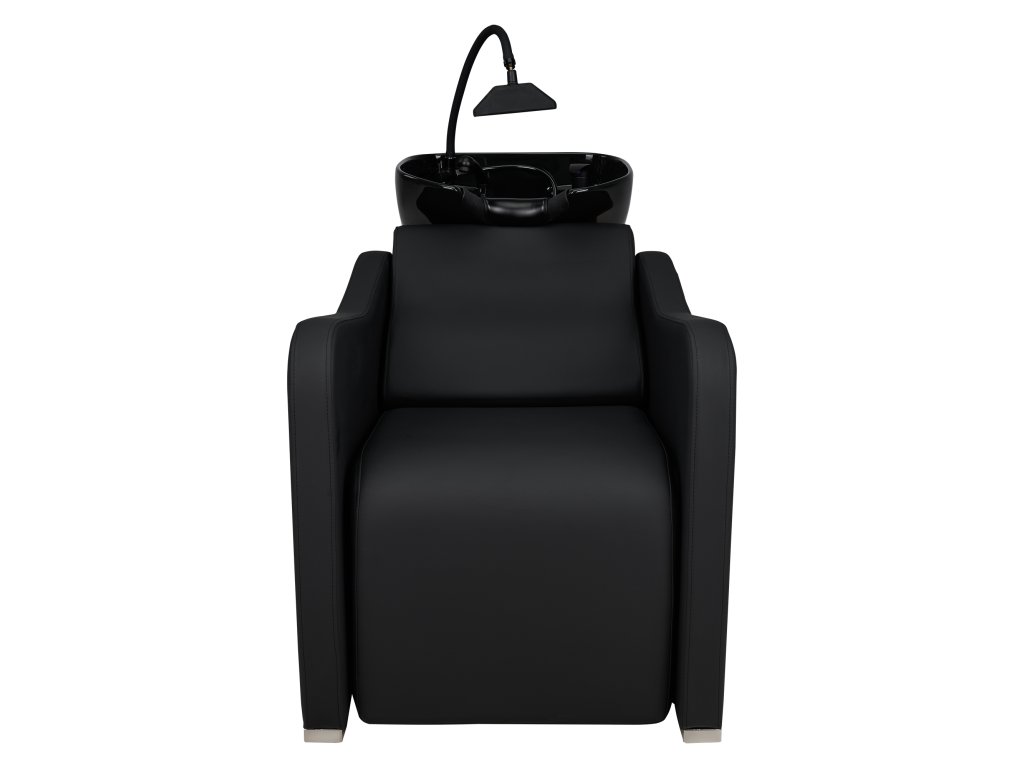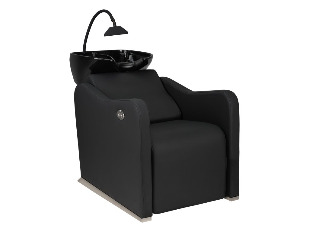 Die Waschbox ist mit einem weißen keramischen Waschbecken ausgestattet, das über einen ergonomisch geformten Rand mit schützendem Silikonpolster verfügt und eine sichere sowie bequeme Nackenauflage bietet. Die integrierte SPA-Dusche ermöglicht gezielte Spülungen und entspannende Anwendungen, wodurch sich das Modell besonders für Premium-Services und Wellness-orientierte Behandlungen eignet.