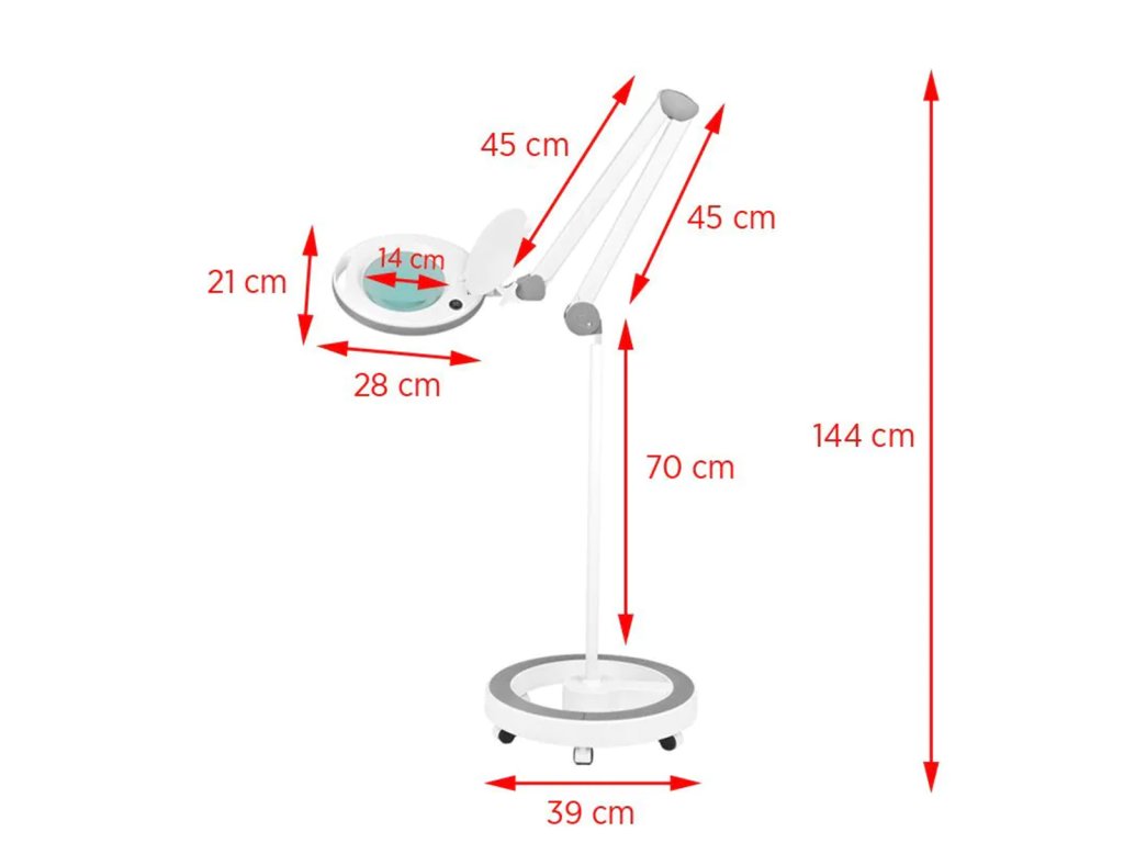 Diese Lampe ist ein unverzichtbares Werkzeug in Schönheitssalons, Arztpraxen, Tierkliniken, Tattoo-Studios oder bei der Durchführung von Maniküre, Pediküre, Depilation oder Permanent Make-up. Dank des flexiblen Arms und des stabilen Rollstativs lässt sich die Lampe leicht positionieren und an jede Arbeitssituation anpassen.