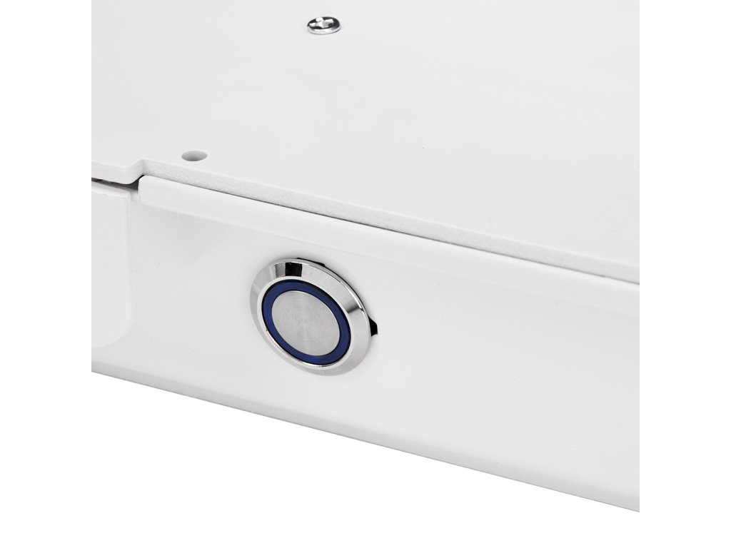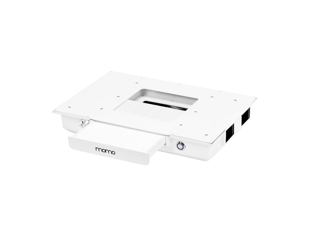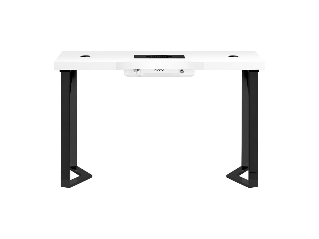 Der Tisch ist mit einer integrierten Kassetten-Staubabsaugung Momo J-02 mit einer Leistung von 48 W ausgestattet. Sie entfernt effektiv Staub, der beim Feilen und Modellieren von Nägeln entsteht, und unterstützt hygienische Arbeitsbedingungen sowie den Gesundheitsschutz.
