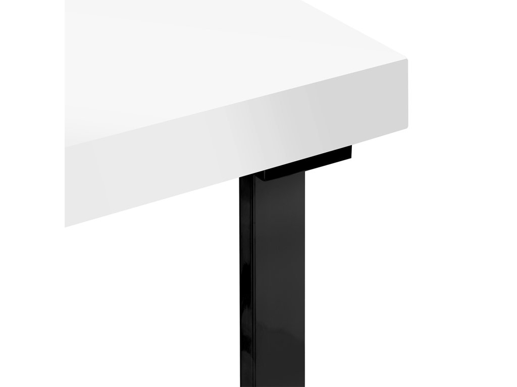 Der Tisch überzeugt durch sein minimalistisches Design mit weißer Hochglanz-Arbeitsplatte, schwarzen Metallbeinen und goldenen Details. Das elegante Erscheinungsbild passt sowohl in kleinere Studios als auch in größere, moderne Salonräume.